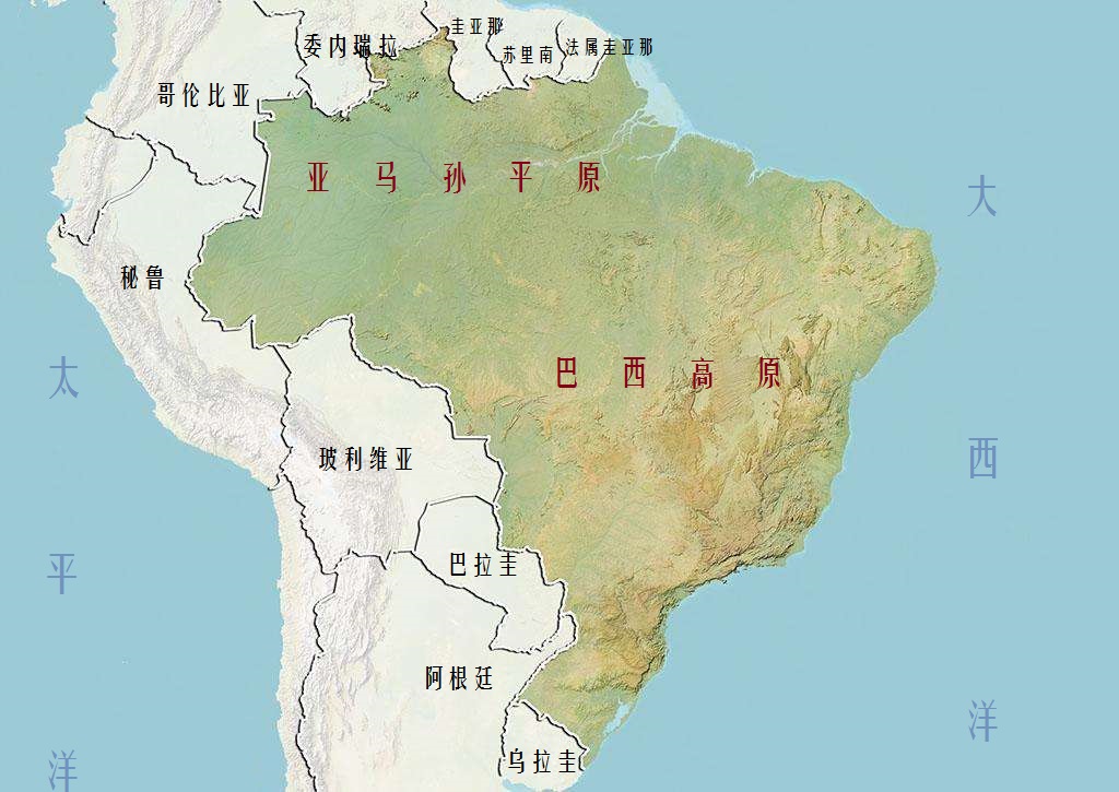 巴西的地形主要分为两大部分,巴西高原和亚马逊平原,北部的亚马逊平原占整个巴西面积的1/3,也就是说,巴西拥有1/3的土地,被“地球之肺”亚马逊原始森林所覆盖,中部和南部则是巨大的巴西高原,同时呢,也是世界上面积最大的高原,不过,巴西高原和我国的云贵高原完全不同,在这里海拔500米以上就已经被称为高原了,再加上巴西高原地形平坦,土地肥沃,这也就使巴西的农牧业十分发达,像咖啡、蔗糖、柑橘、菜豆等产量都冠居全球