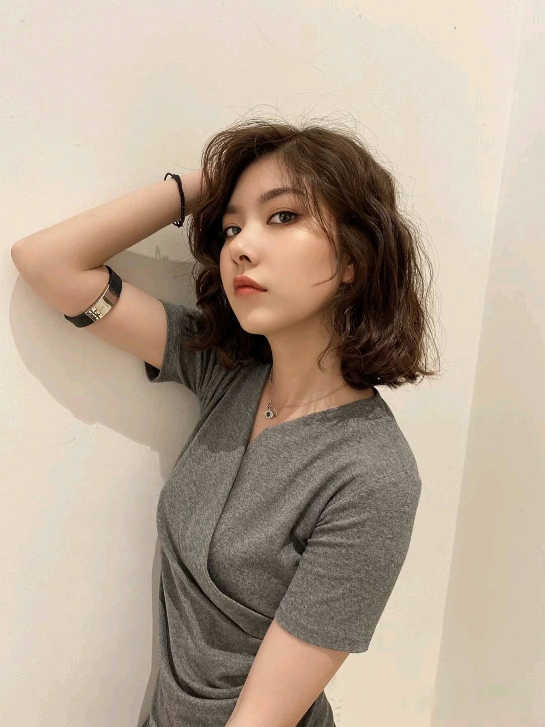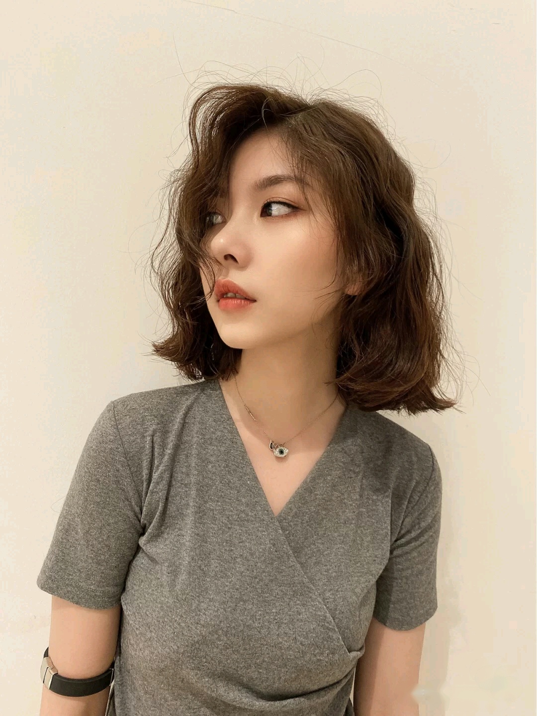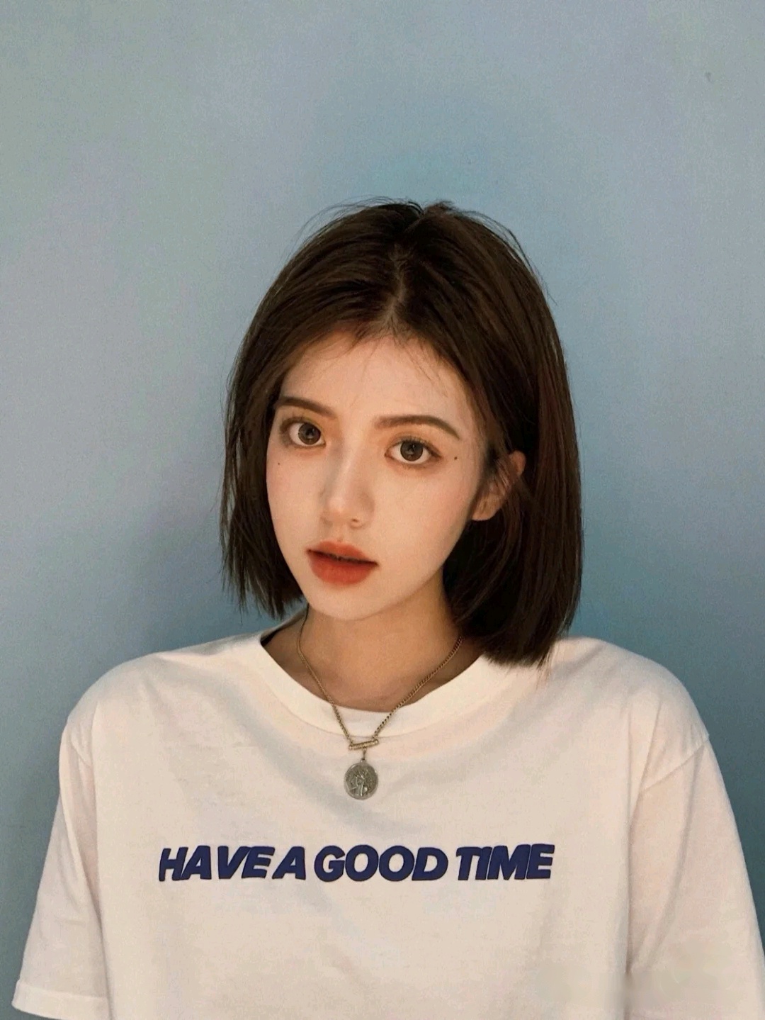 对于方脸或者脸型偏大的女孩子来说,太短的短发是不太适合的,而像这种比较中规中矩的齐肩短发,则是方脸和大脸女孩不容易出错的发型之一。