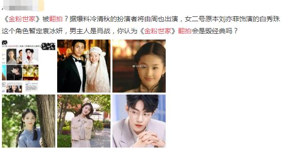 总结来说,若《金粉世家》真的于近期翻拍的话,还是比较受期待的,除了故事性好之外,肖战、胡冰卿、袁冰妍的阵容也很不错,当然,相比于肖战来说,两位女角面临的挑战要更大一些。