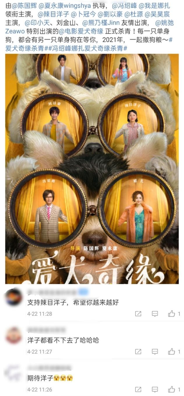 就在前不久,由古力娜扎和辣目洋子等人参演的电影《爱犬奇缘》官宣杀青并确定于2021年上映。电影里的辣目洋子首次和刘以豪合作拍对手戏,不少观众都十分期待辣目洋子在电影里有精彩的表演。