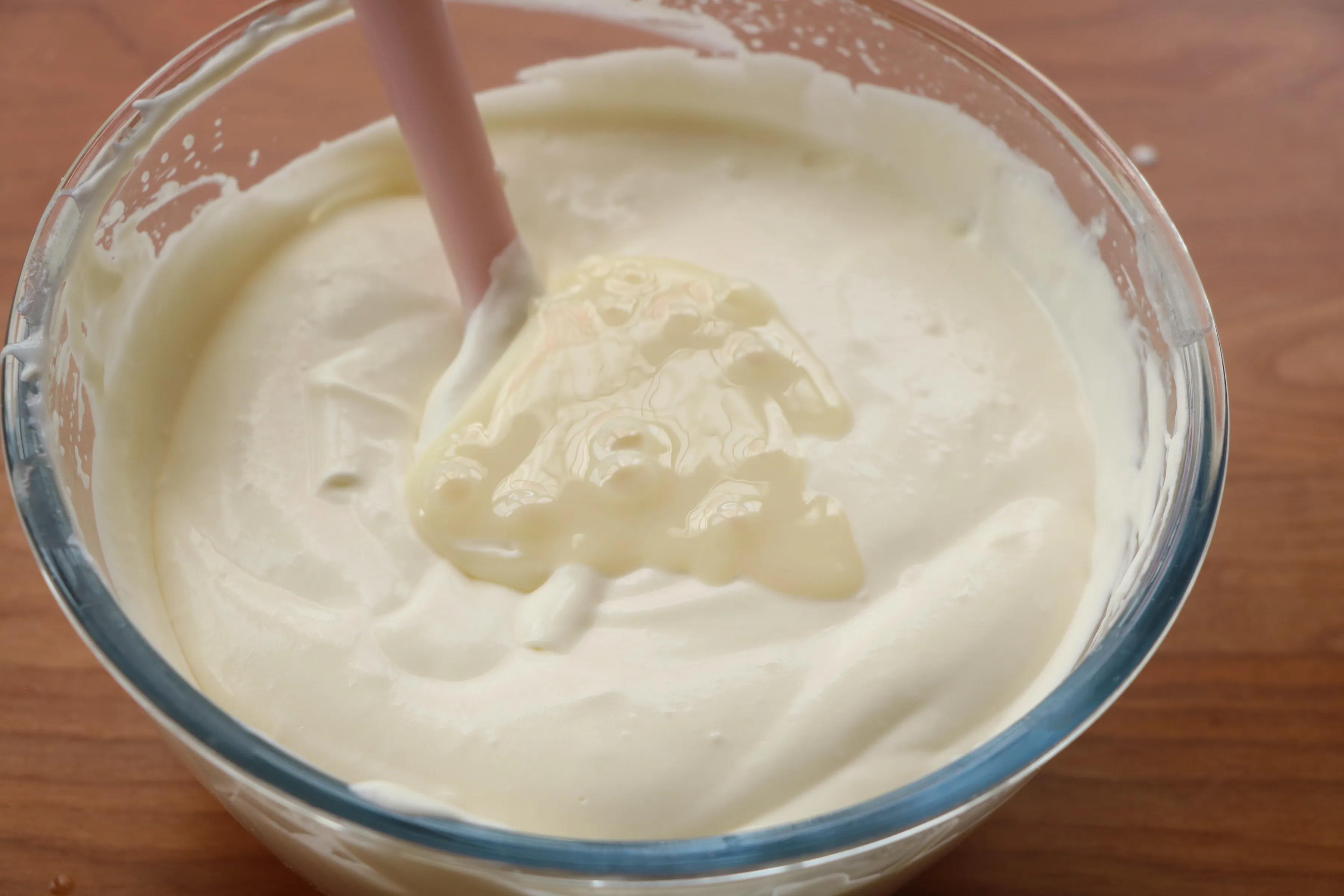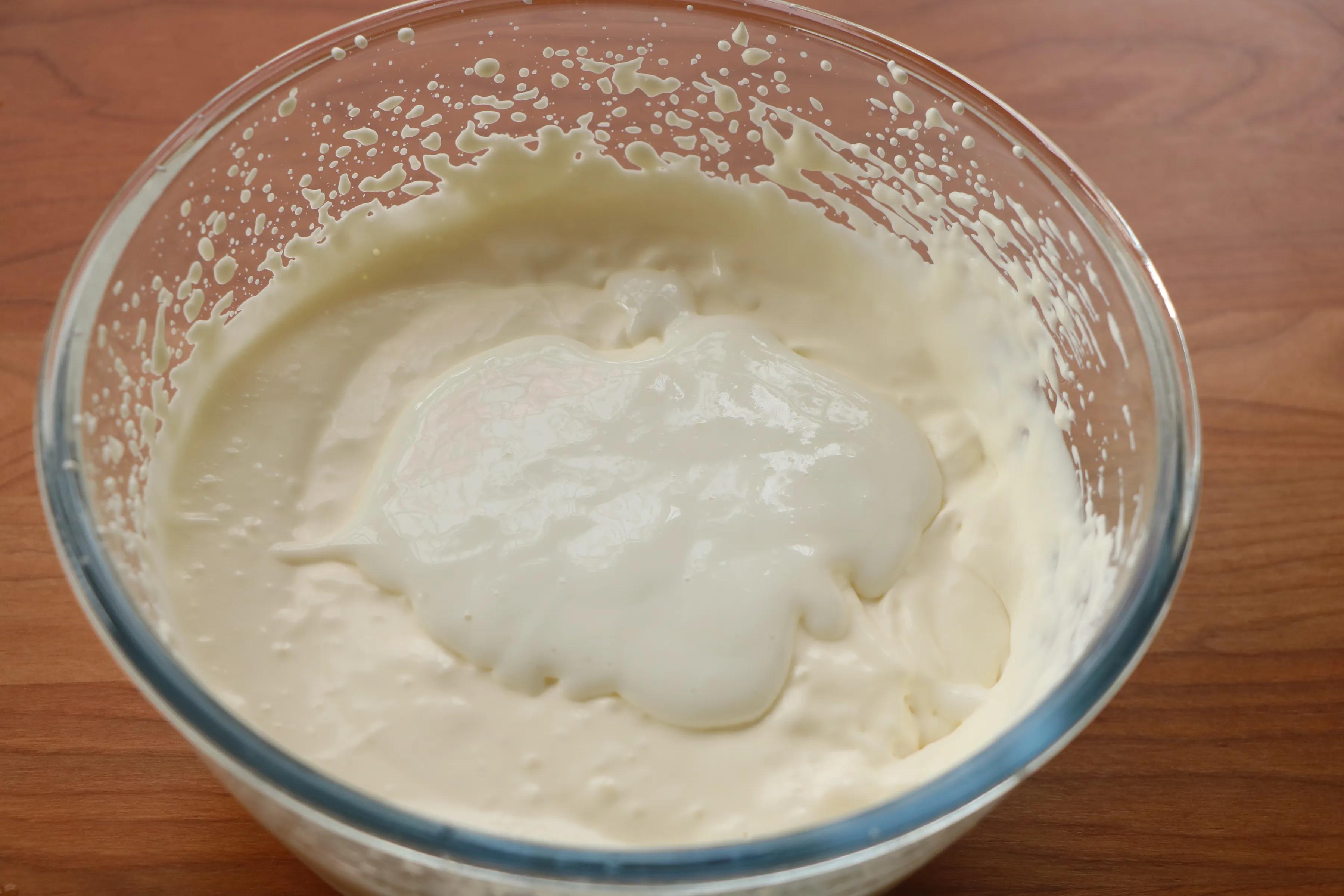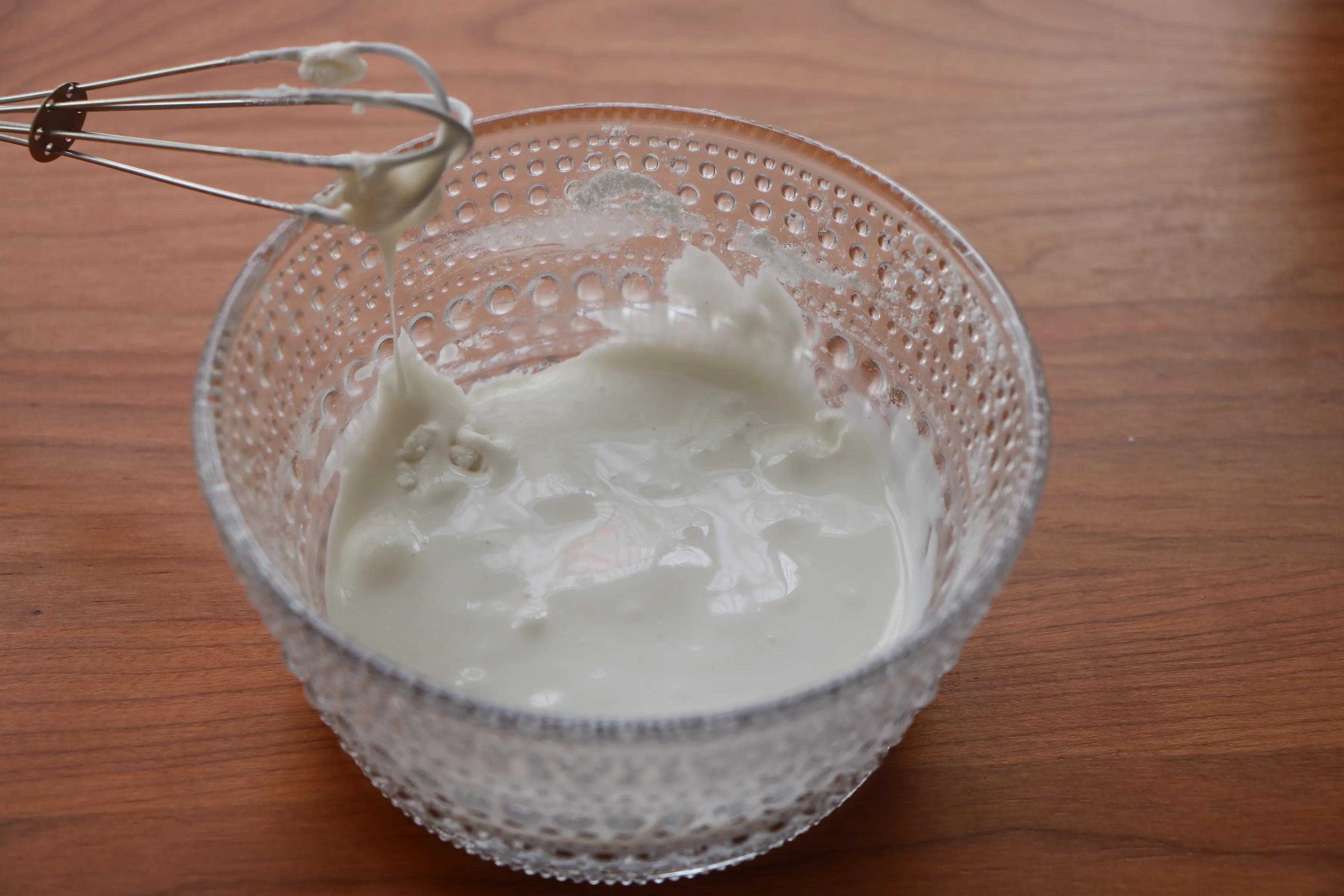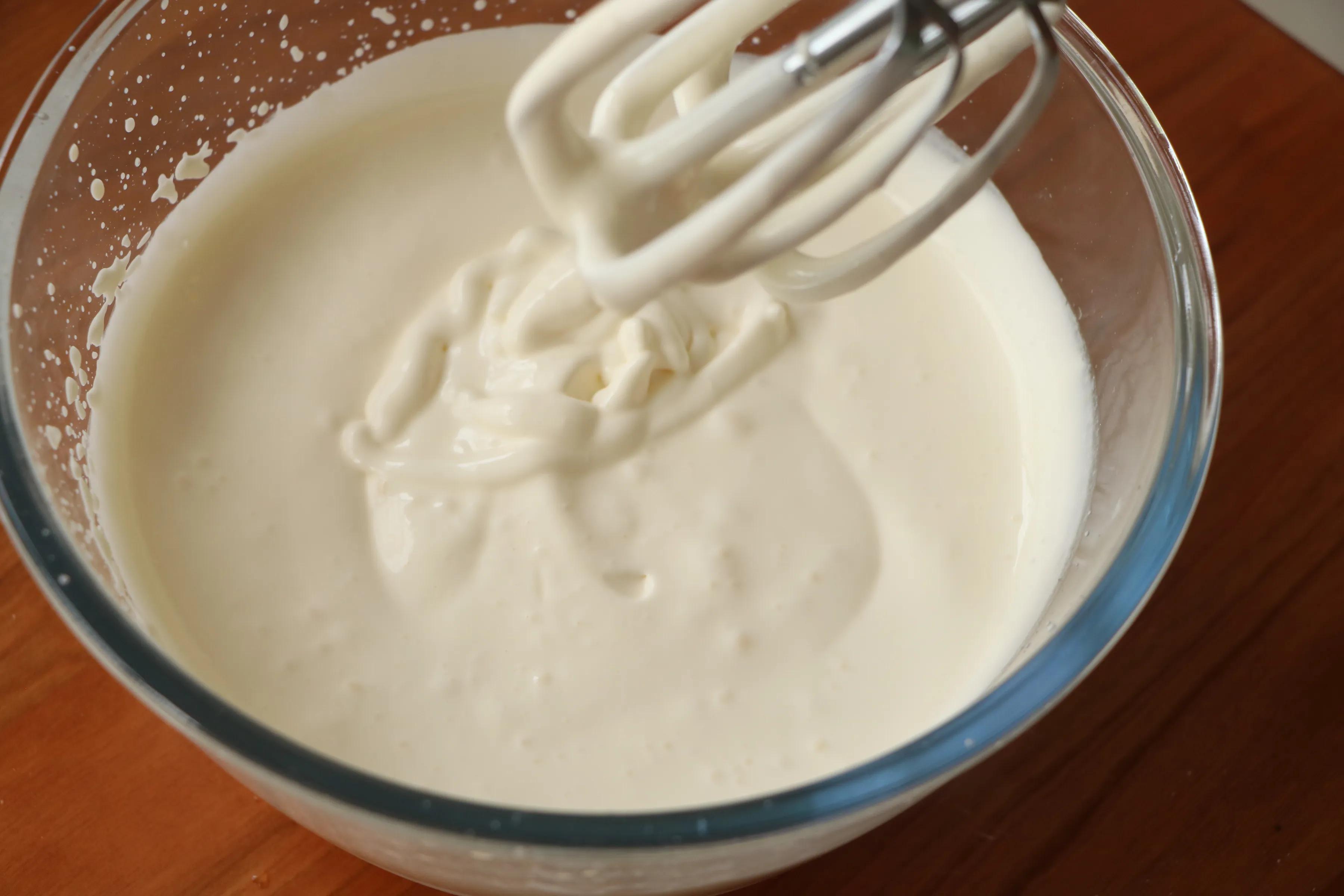 4、用电动打蛋器打至开始变浓稠的状态即可停止打发;