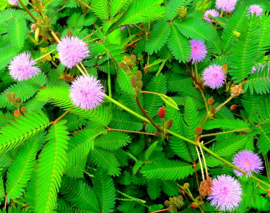 第一,观赏用。含羞草的植株披散,羽叶秀丽,叶片和羽片一碰即可闭合,反应奇特,它的花多而清秀,浅红色醒目,可以栽植在庭院观赏或盆栽在室内观赏用。