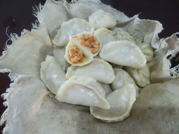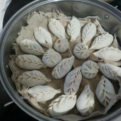 5、把包好的蒸饺放到蒸屉里,开大火,等上气换中小火,蒸15-20分钟