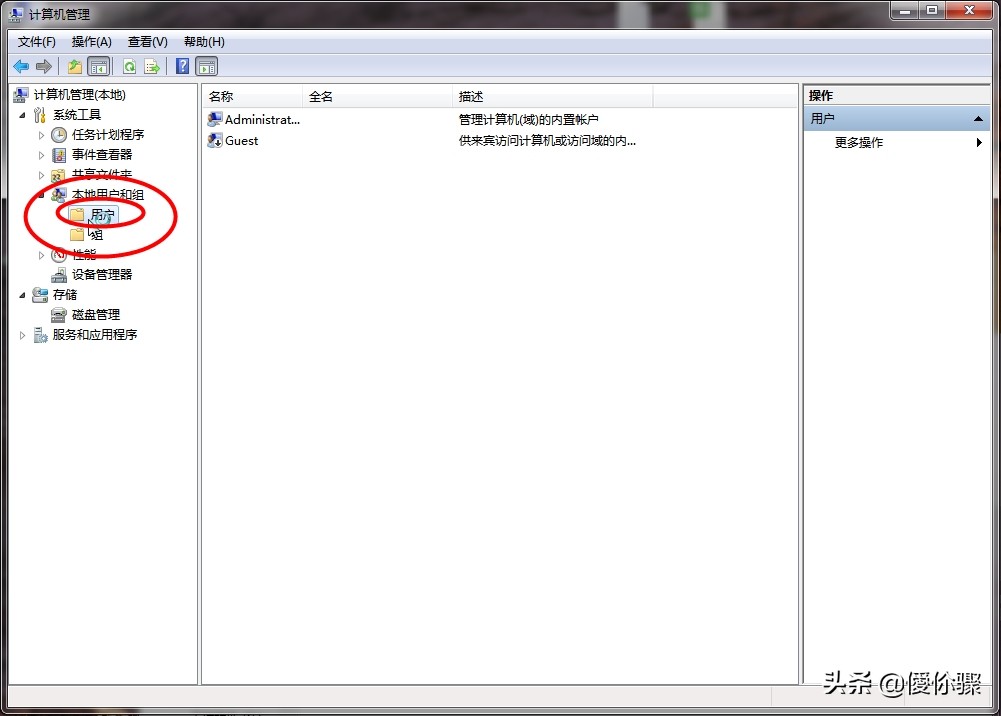 在弹出的“计算机管理”界面中,选择“本地用户和组”点开,点击“用户”文件夹即可;如图所示:
