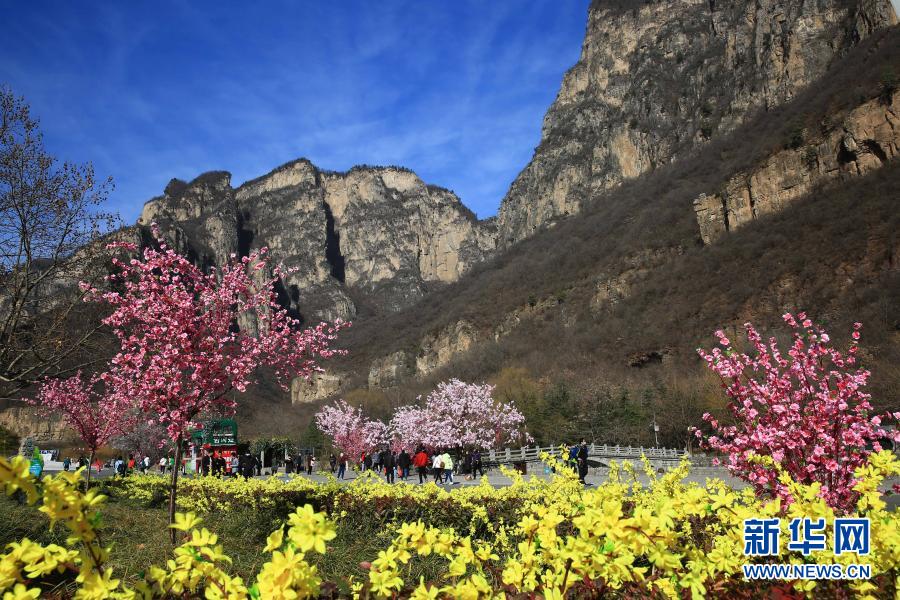 随着气温回升,位于河南省焦作市修武县太行山区的云台山风景区春意渐浓。