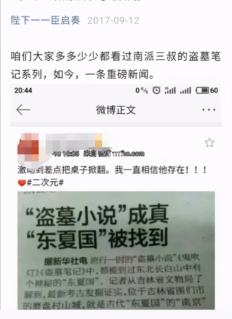 2017年的时候,一条搜索冲上热搜,“盗墓笔记被证实,东夏国被证实真实存在!”虽然这个国家只有短短的十几年,但也让人不得不怀疑,张家古楼是不是也存在的?小哥是不是在哪个地方隐藏着呢?盗墓笔记到底是笔记还是小说?所以有人说,你一句我一句,三叔明天就入狱,不过还真有一个作者写小说把自己写进监狱