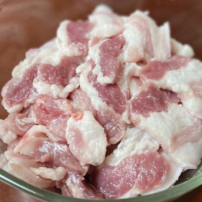 1、准备好一块肥瘦相间的五花肉,切成均匀的薄片。