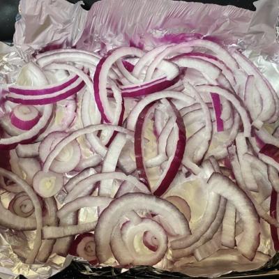 4、将土豆洗净去皮(买的小土豆,皮很薄,洗干净没有去皮也可以的),切成片,洋葱切丝,如图,备用。