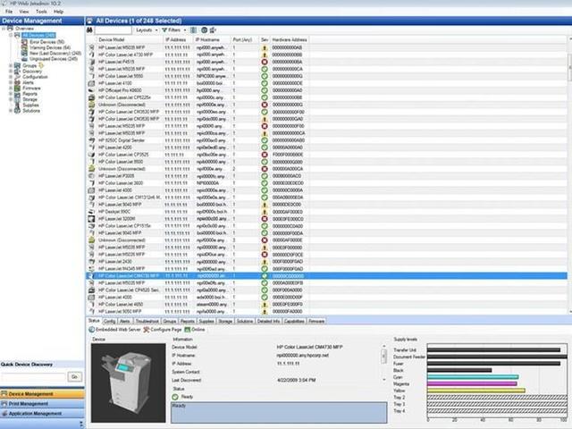 除了安全,作业记录是企业级打印的另一大特点,惠普M455dn搭载的HP Web Jetadmin功能即可实现,企业的网络管理人员可通过该功能访问设置界面,不仅可以监控企业内的打印设备,还可以查看作业记录,最为关键的是通过预警系统对设备的故障进行提示,方便管理人员及时排查。
