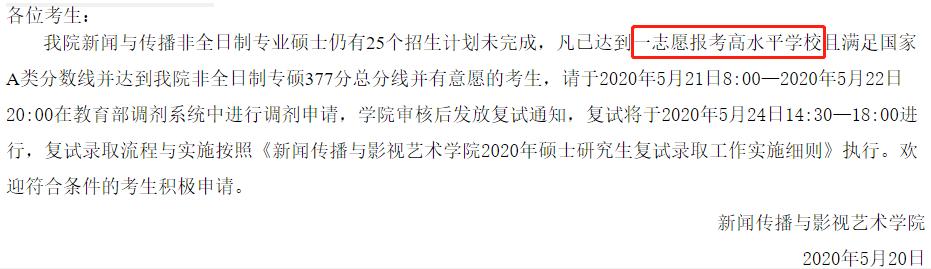 从历年的考研调剂情况可以推测今年的情况,往年调剂名额较多的院校今年的情况估计是差不多的。在2020年部分院校的调剂通知中,我们可以发现“第一志愿报考院校”和初试成绩是非常重要的。