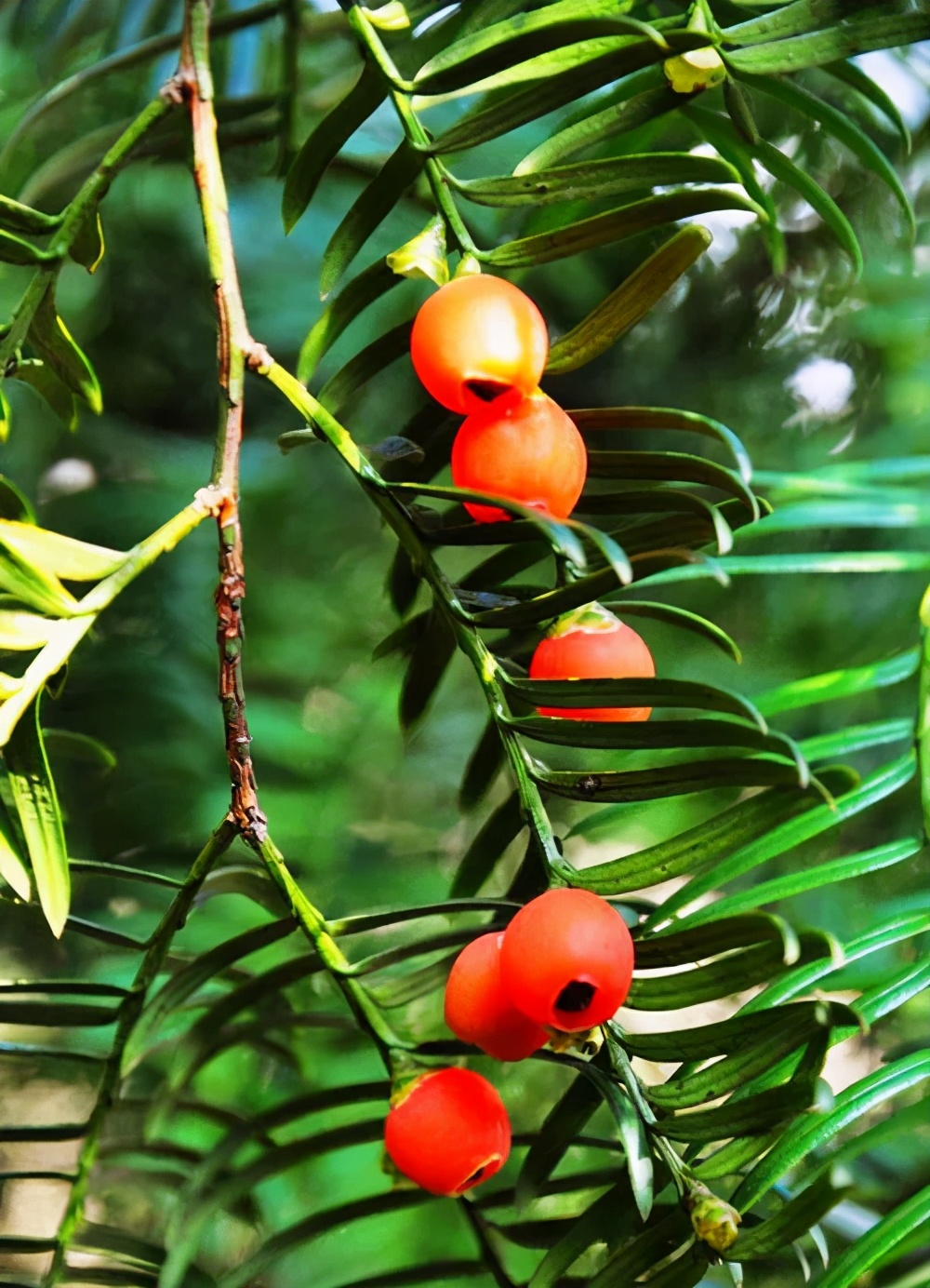 《东北药植志》:紫杉,叶有毒,假种皮味微甜可食,但食多则中毒。《本草推陈》:紫杉,用皮易引起呕吐,用木部及叶则不吐。它通体除红色的假种皮(果实)外,其他含有植物碱基的混合物,统称紫杉碱,具有高毒性。