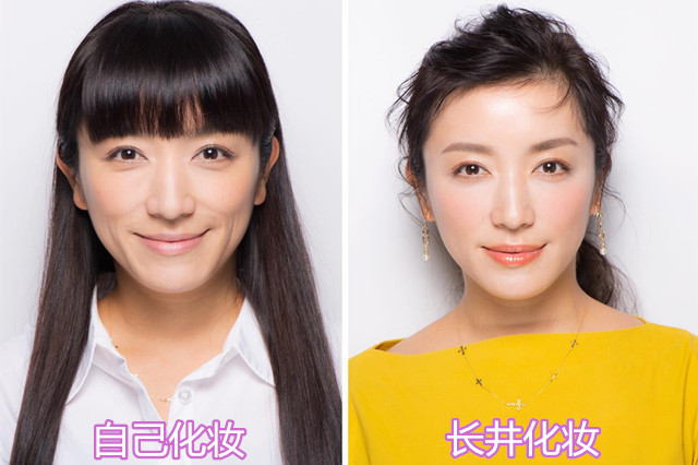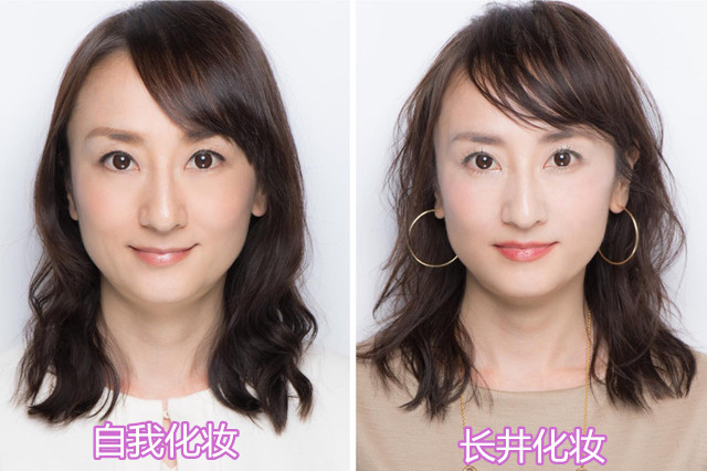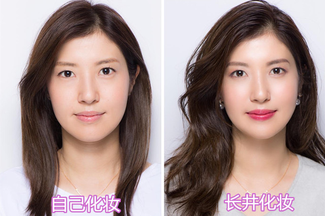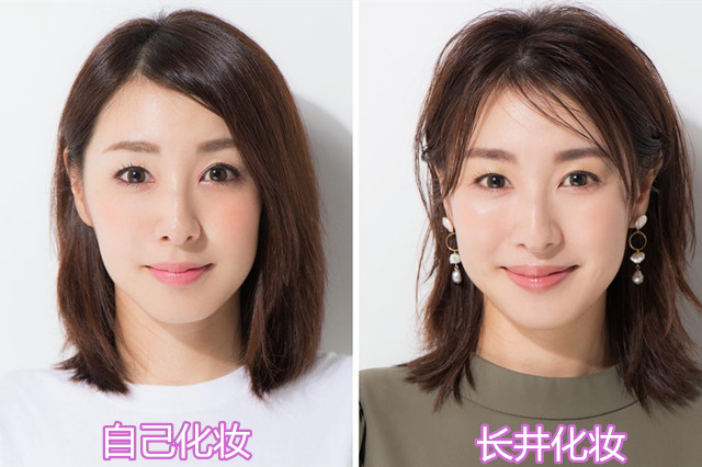 用肉眼很难看到,但是通过自我化妆,在哑光的皮肤上感觉有点干。和长井彩妆,光滑而有光泽的皮肤的对比,就明显脱颖而出了。