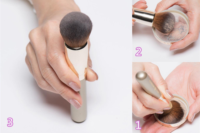 3、通过用粉末浸泡刷子的内部,可以获得看起来像是均匀的效果。