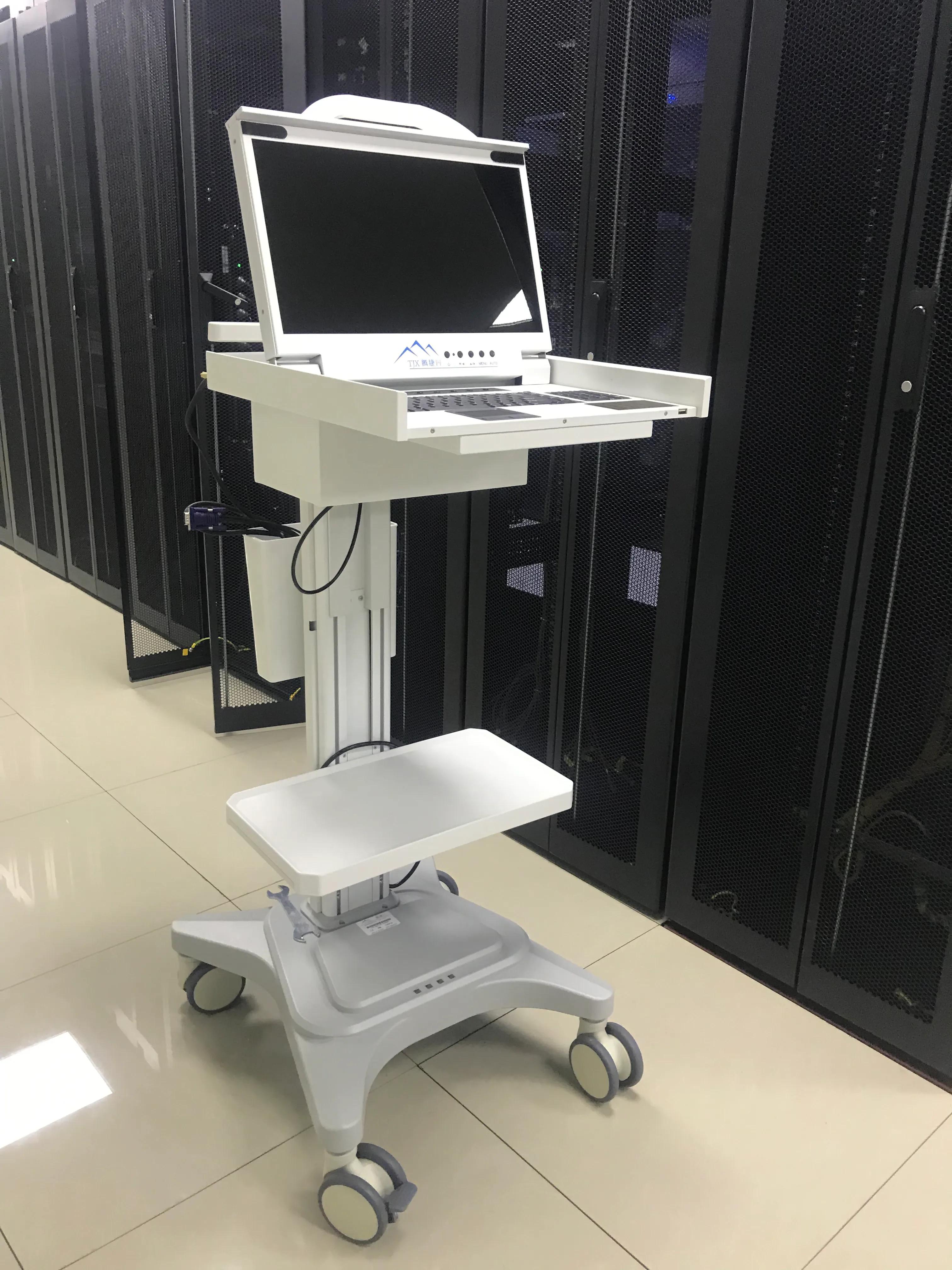 2. 产品设计为机房推车和折叠KVM一体式,高清KVM连体于推车立柱上,稳固且能上下升降。