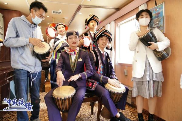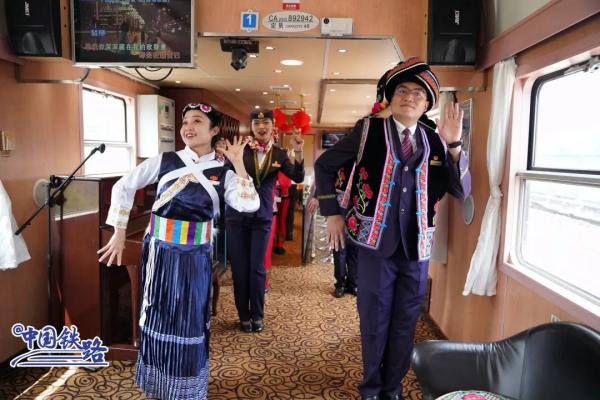 列车途经多个少数民族聚居地,乘务员都身着彝族、白族、纳西族等民族服饰,并且熟练掌握普通话、英语、少数民族语言和简单手语。