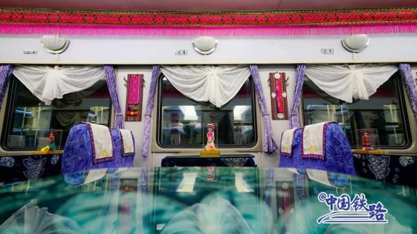 车内装饰颇具民俗特色,彝族手工绣饰的坐垫、白族手工扎染的桌布、布依族蜡染式样的窗帘等,连餐巾纸都成为一道景观。