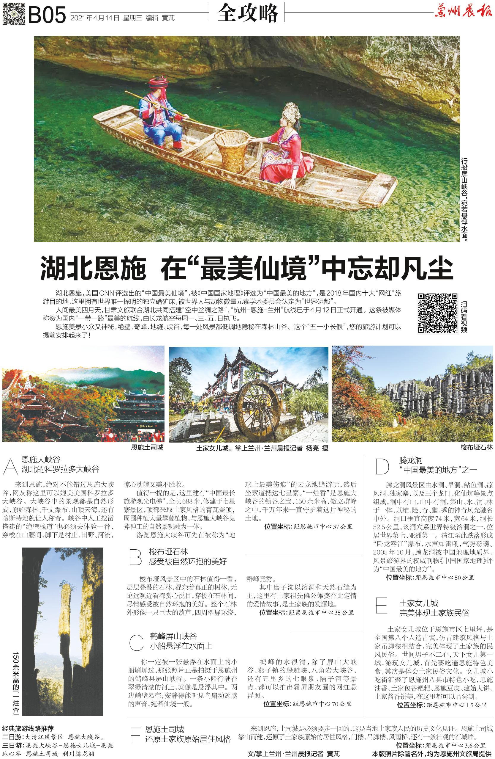 人间最美四月天,甘肃文旅联合湖北共同搭建“空中丝绸之路”,“杭州-恩施-兰州”航线已于4月12日正式开通。这条被媒体称赞为国内“一带一路”最美的航线,由长龙航空每周一、三、五、日执飞。