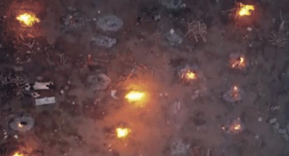 4月22日,无人机拍摄的印度民众大规模火葬尸体的图片。图源:央视新闻