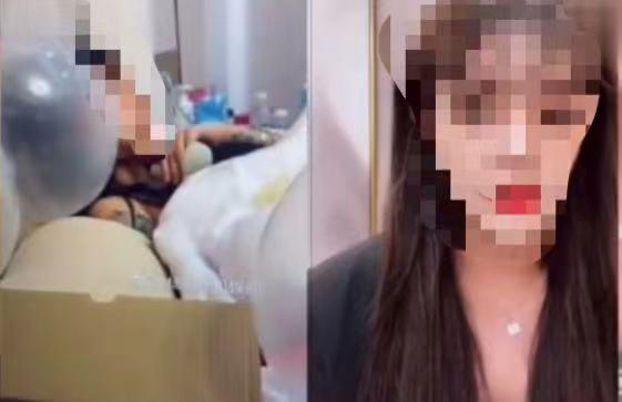 画面显示,韩某某躺在一堆气球中,面容憔悴。