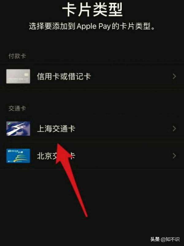 3、选择需要添加的卡类型,因为我们需要使用交通卡代替门禁卡,在交通卡中选择任意交通卡;