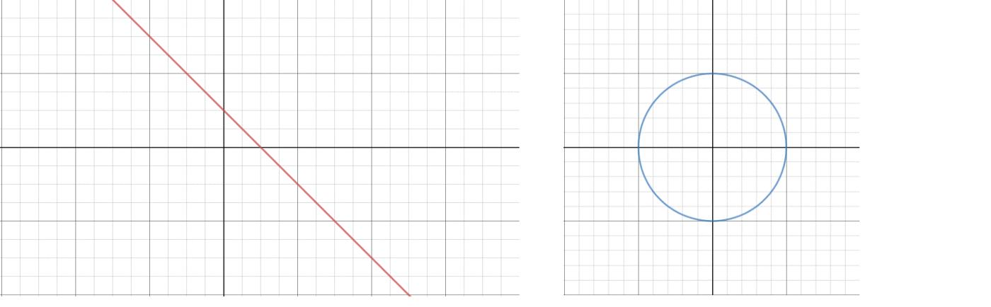代数方程和几何图形之间有一种自然的交换。x^2+y^2-1= 0的解形成一个圆x+y-1=0形成一条直线。