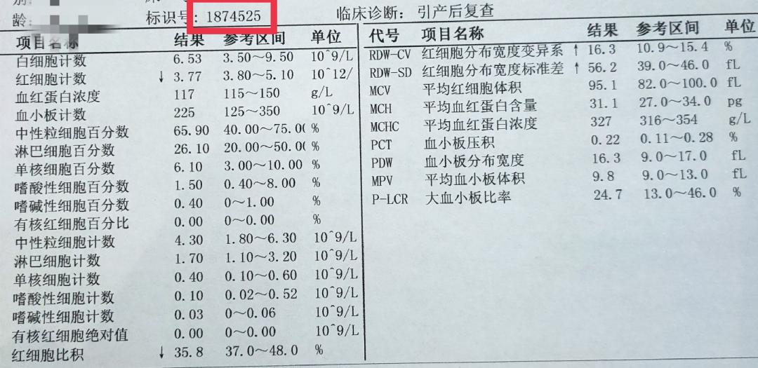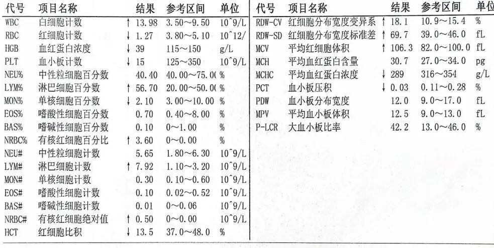 患者出院半月后复查血常规显示网织红增高及轻度贫血。