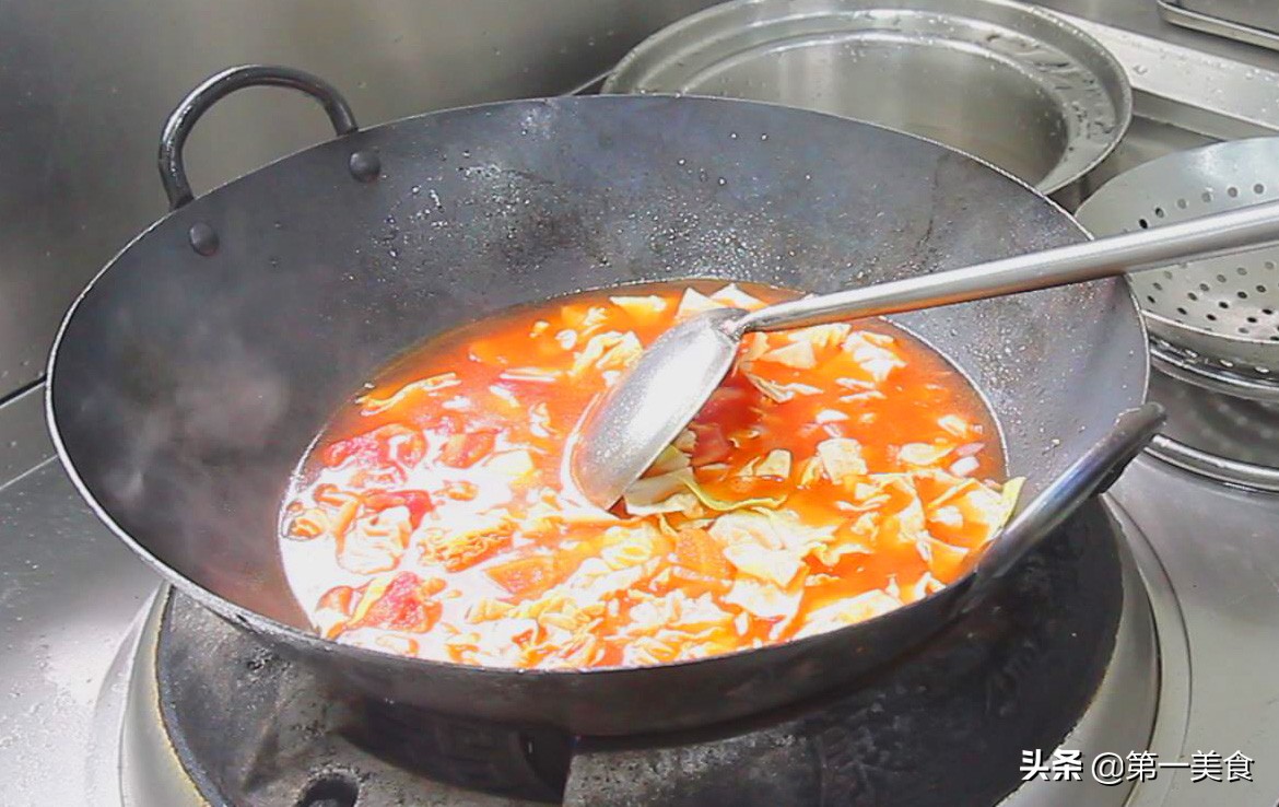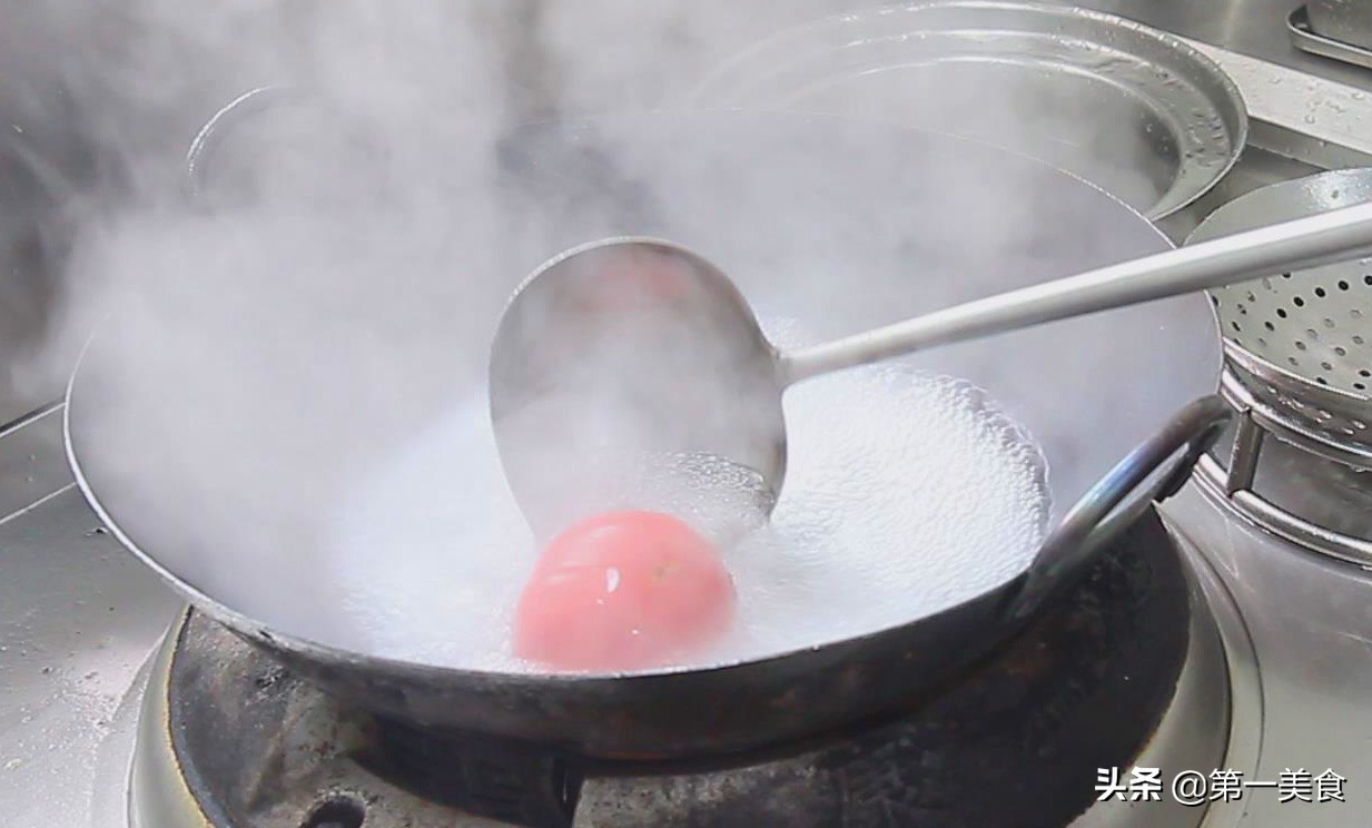 锅中烧开水,水烧开后,把西红柿放在热水里烫一下,烫一下比较容易去皮。