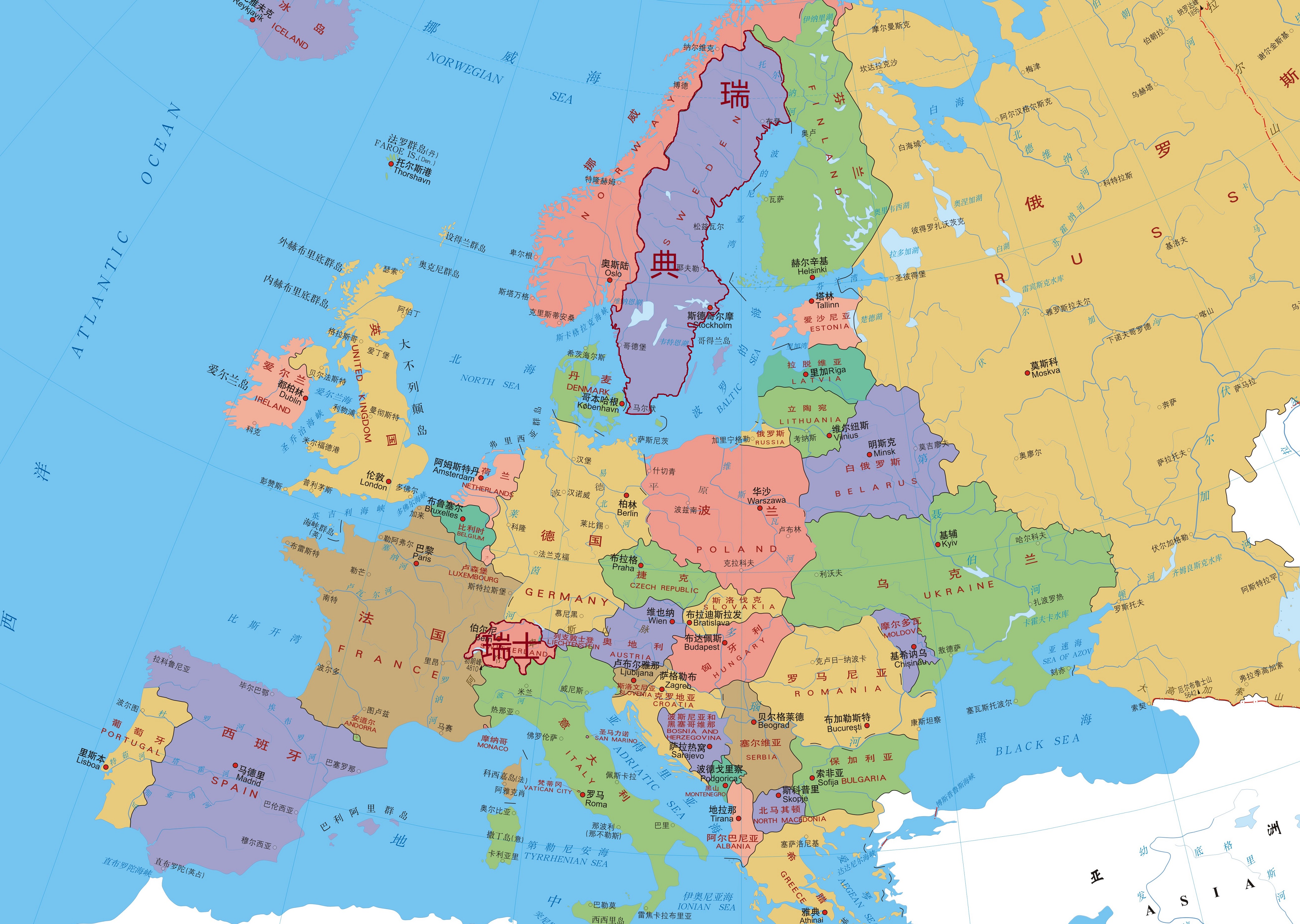 瑞典和瑞士两国分布图