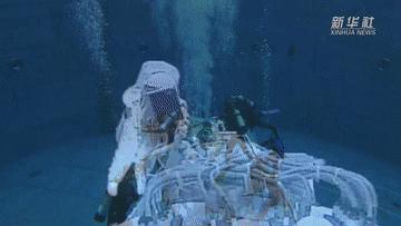 “天上5个小时的工作任务,在地面就要做50个小时的水下训练,比例是1:8到1:10。操作很多、很累的情况下,训练结束以后,(航天员的)体重能降低1到2公斤。”航天员科研训练中心航天员选拔训练室主任王焰磊说。