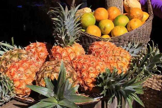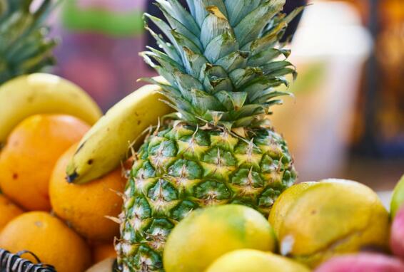 菠萝味甘、微酸、微涩,有生津止渴、消食开胃、补脾胃、益气血等功效。
