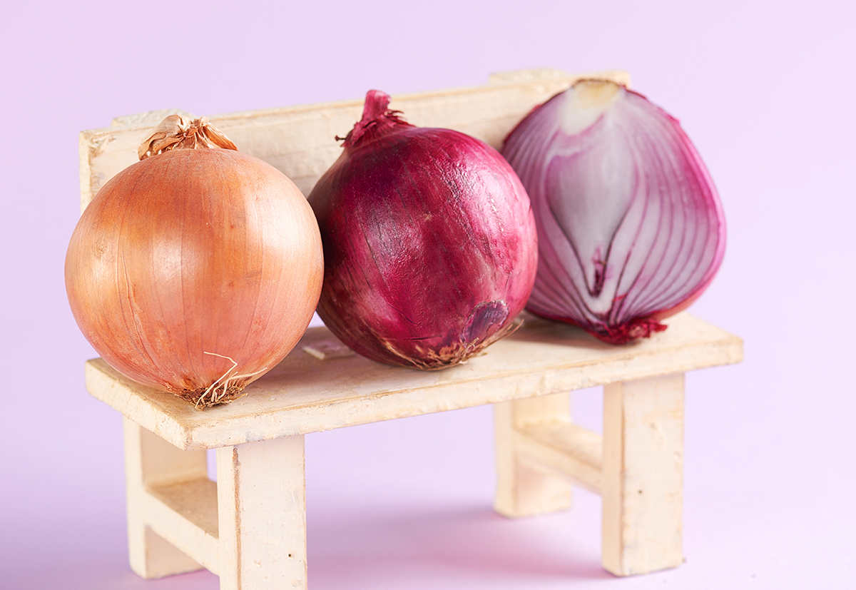 三色洋葱中,紫洋葱含最多花青素,抗氧化物最多,有助护肤抗衰老。