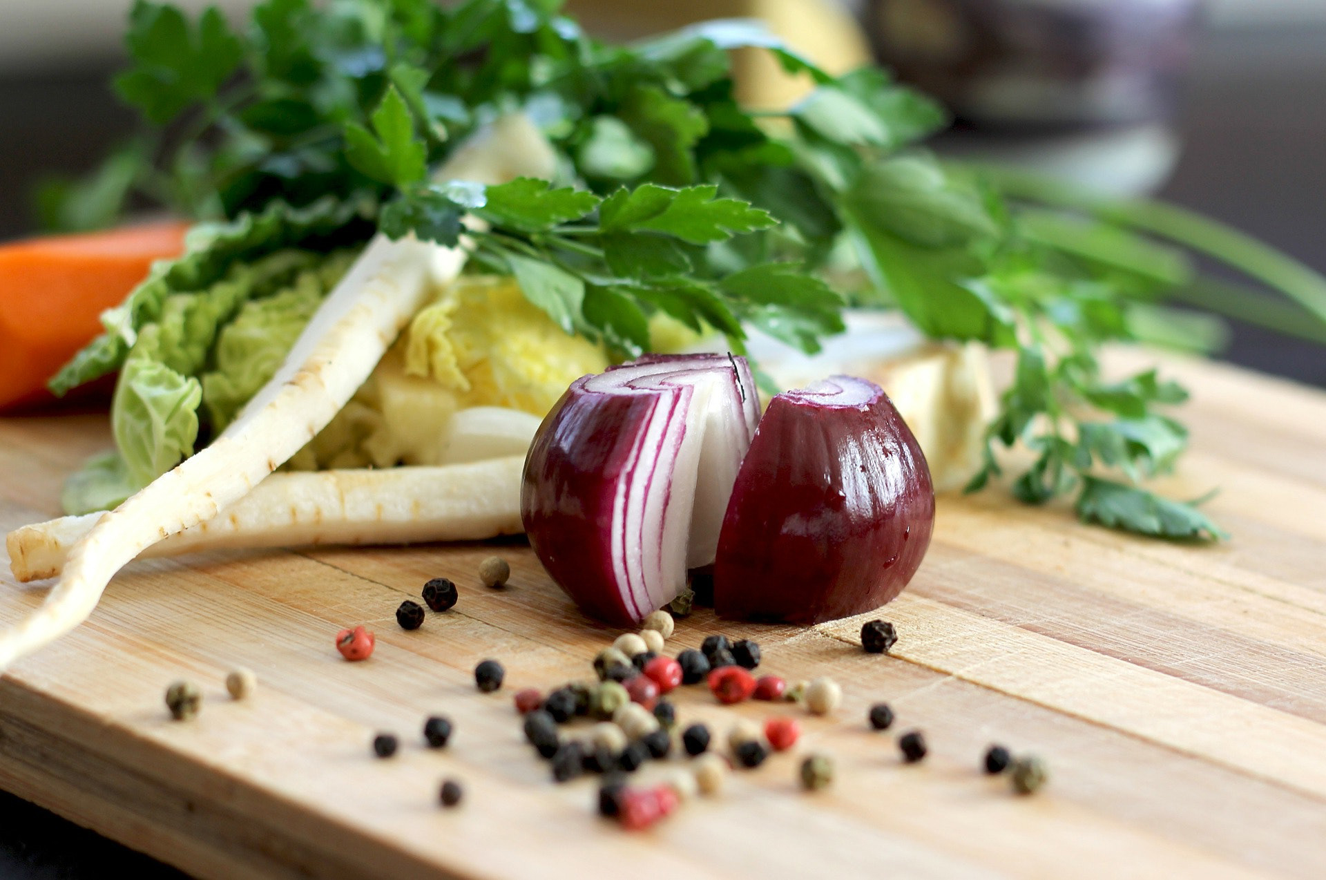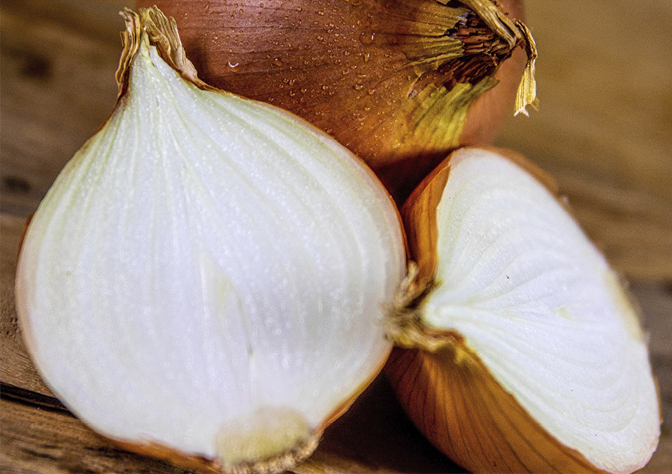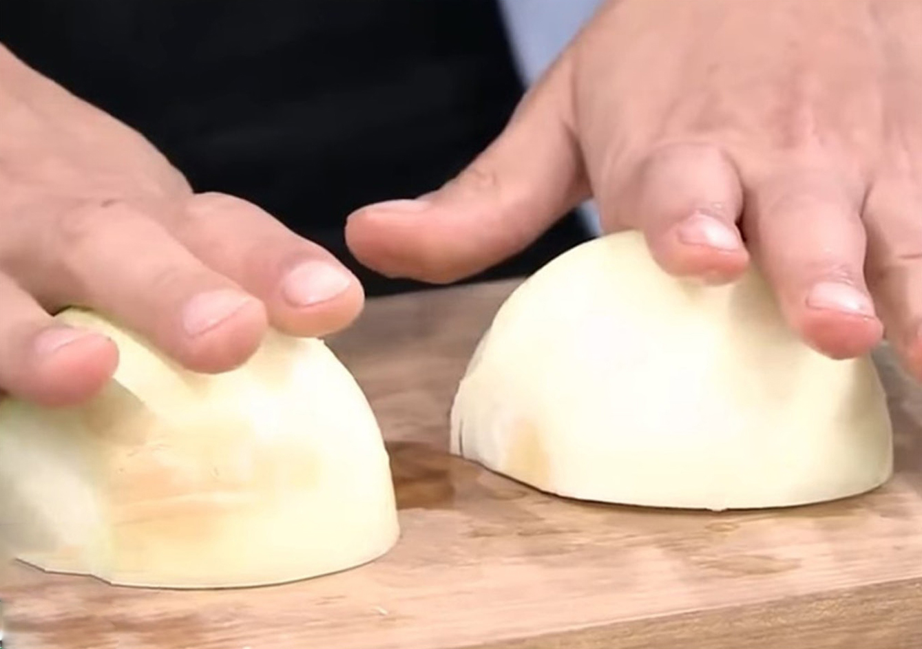 取出洋葱切半时,别急于打开洋葱。