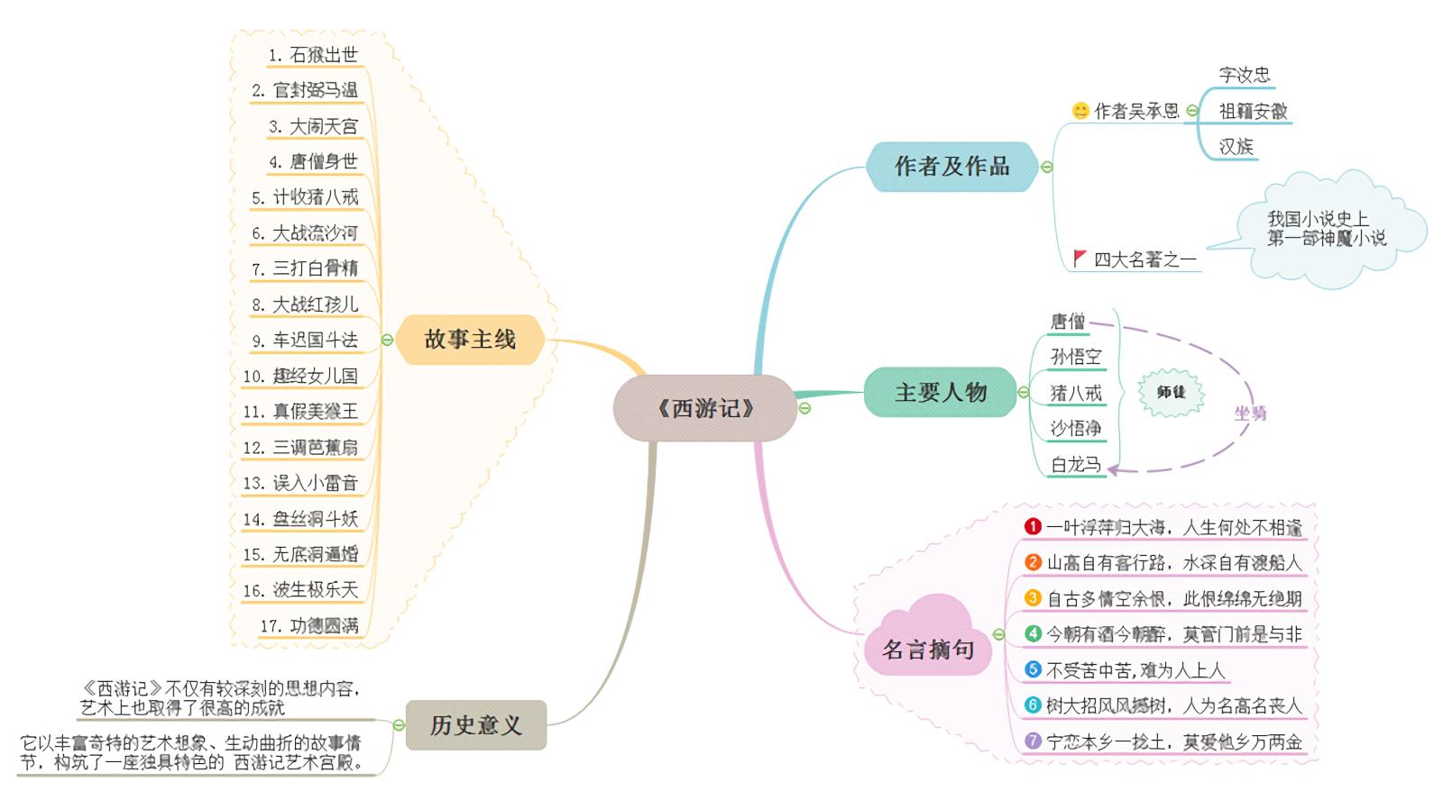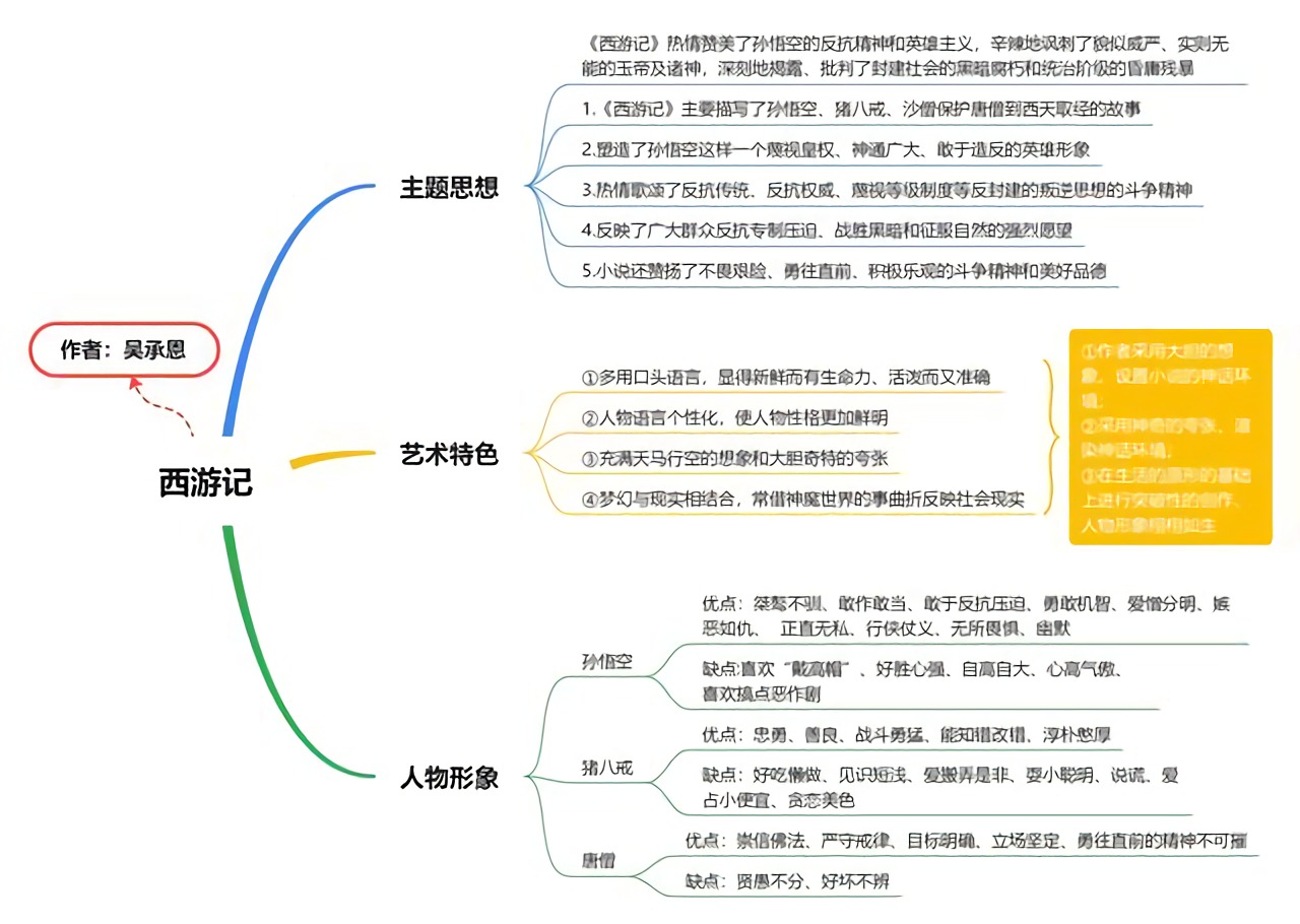 这2张思维导图,一定要让孩子记熟,《西游记》60%的考点都在这了。