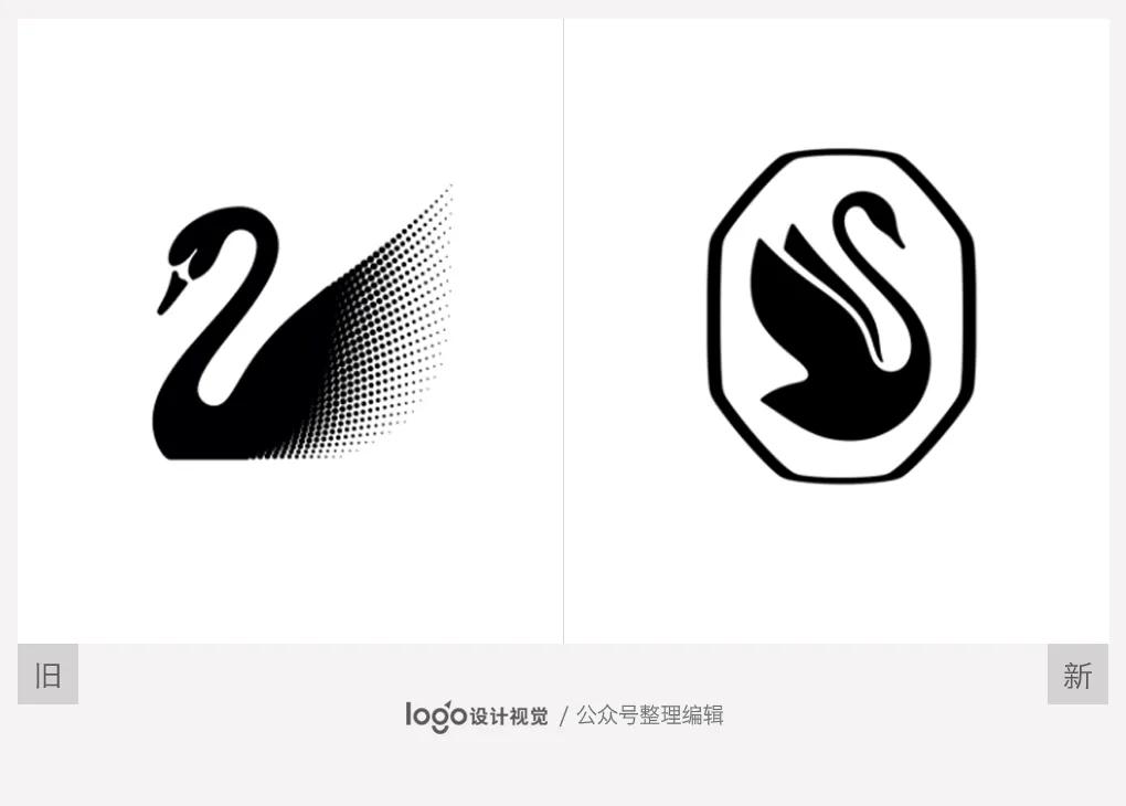 天鹅图案从左到右转变了方向,四周增加了如同水晶状的八角形,天鹅的脖子也变得更的细长和流畅。翅膀渐变斑点改得更加写实!新的流线型设计旨在“增强品牌不断发展的动力”。