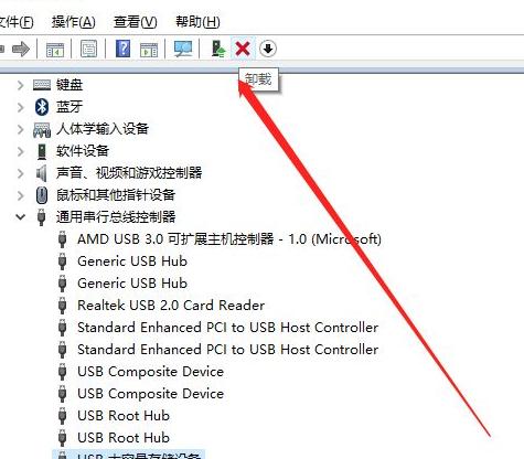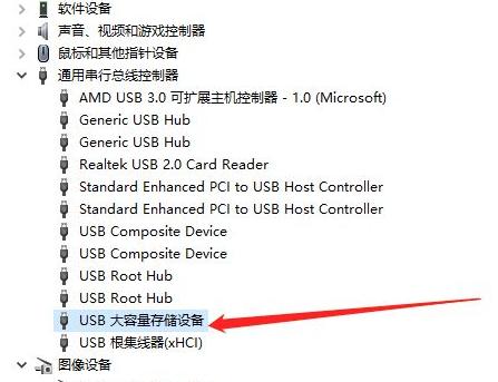 7,插入USB闪存驱动器,等待扫描完成,通用串行总控制器显示“USB大容量存储设备”,这是成功显示U盘。