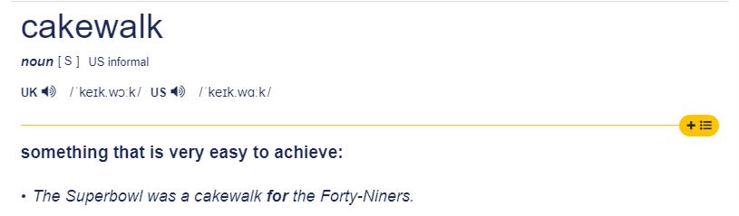 蛋糕没长脚,当然不会走路了,a cakewalk 的真正意思是易如反掌的事情,我们要理解为做某事像走路去吃蛋糕一样简单。