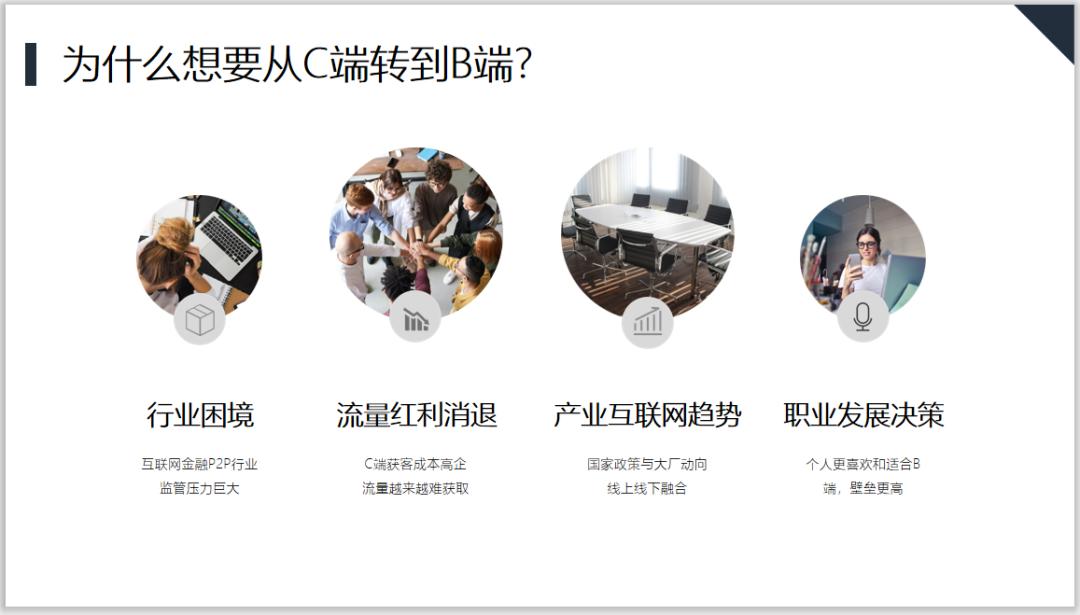 首先想跟大家谈一谈我为什么想要从C端转型B端,主要有以下几个原因。