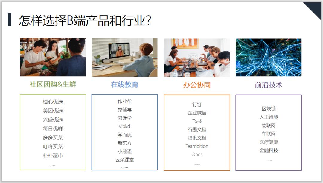 有一个数据表明,在互联网c端行业美国和中国的体量相差无几,但是在云和SAAS行业中国的体量只有美国体量的1/20。中国的发展空间巨大,加上B端行业其实更加细分,有很多的机会给我们发挥;当然其实最主要的还是要基于我们自己的职业规划和兴趣爱好,并不是鼓励大家都要转型B端。