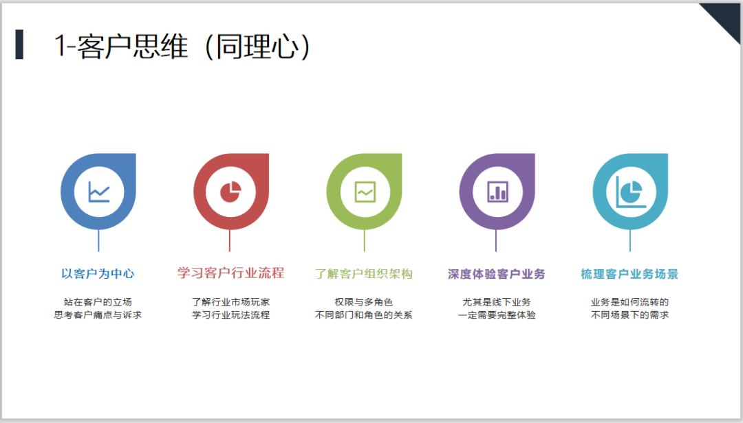 我们在思考客户思维的时候,主要从以下几个方面体现,以客户为中心,站在客户的立场上思考客户的痛点和诉求,