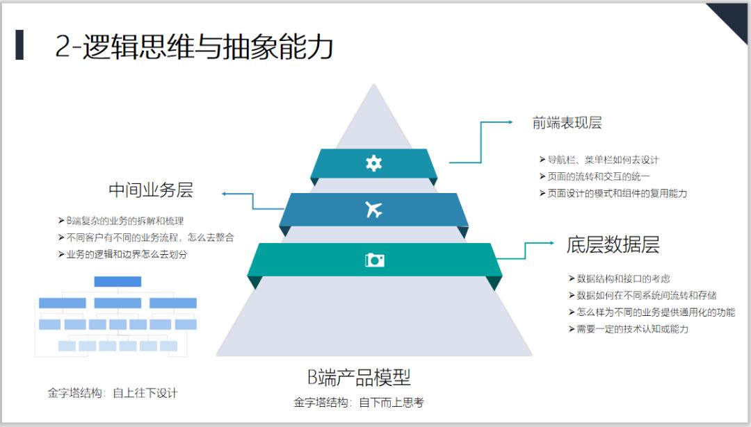 逻辑思维与抽象能力,并不是说C端不需要逻辑思维和抽象能力,而是B端更需要非常缜密的逻辑思维,抽象归纳演绎的能力,能够把复杂的业务流程抽象成统一的可实现的方案。