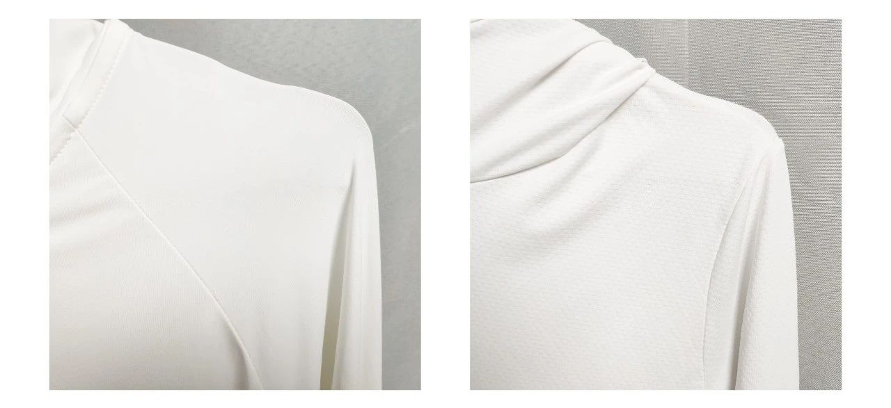 这4款防晒衣都无明显线头,拉链顺滑,有加长衣袖、加长脖颈设计,可以避免手背、脖子晒黑。
