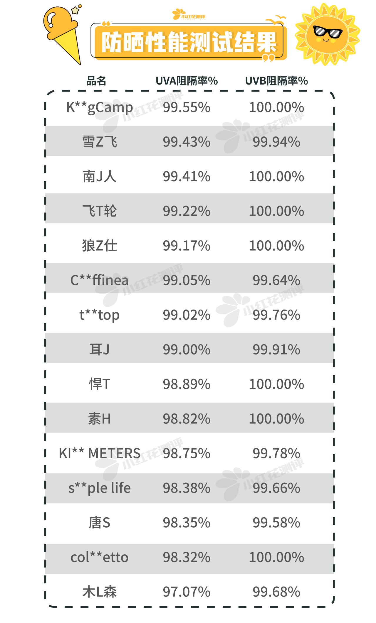 2.K**gCamp、KI** METERS、col**etto、雪Z飞、南J人没有标明紫外线防护指数。