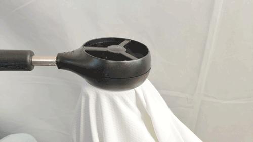 风机固定开I档,将防晒衣袖子覆盖在风筒上,测试通过防晒衣的风速大小。