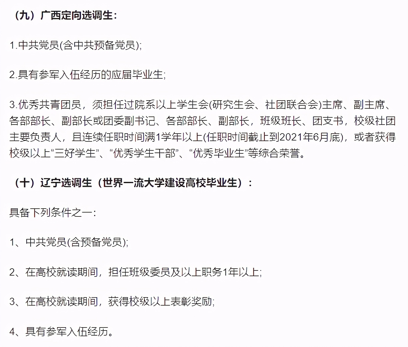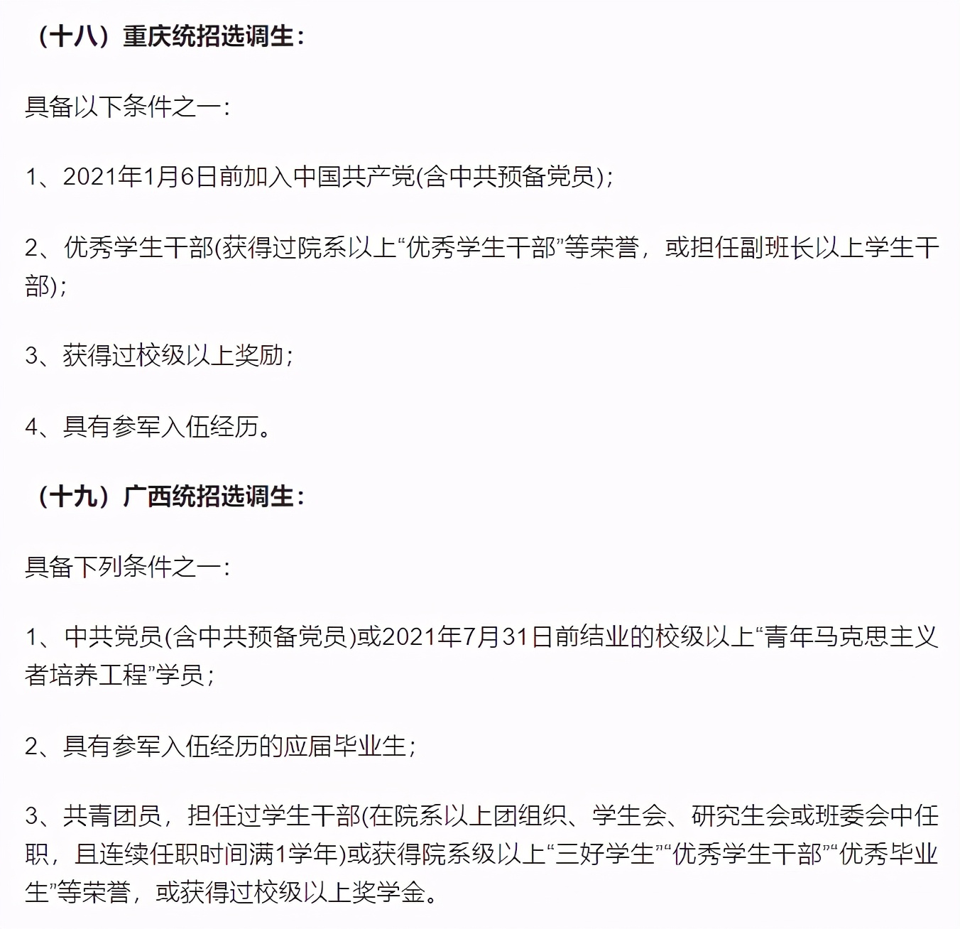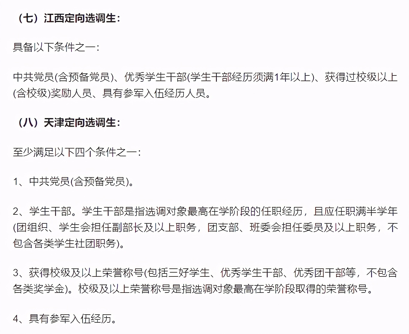 一、党员或学生干部或获得奖项或具有参军入伍经历,满足其一即可的省份