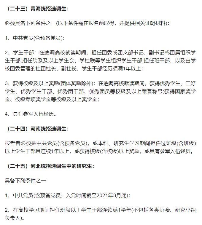 PS:以下条件要求均以2021年考试公告为例、仅供参考,2022年的情况需等公告发布后才知晓。
