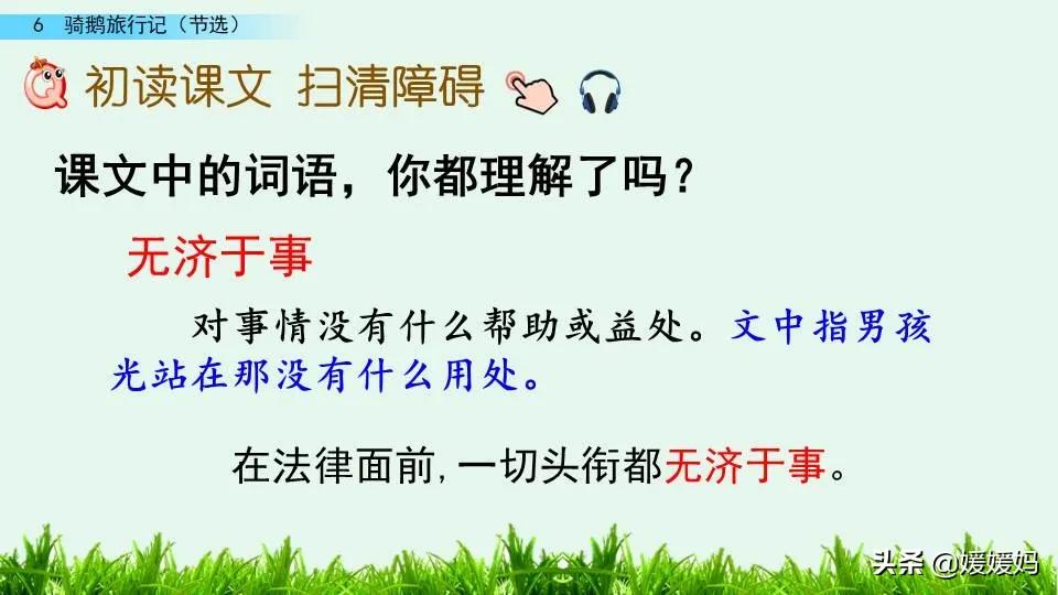 4.但是牛都不听他说话。她们吵闹得非常凶,他真担心哪头牛会挣断缰绳,所以他觉得还是趁早溜掉为妙。这句话中的“溜”改为“跑、逃”好不好?为什么?不好。因为“溜”是悄悄溜走的意思,一方面表明尼尔斯已经认识到了自己以前行为的错误,并感到羞愧的心理;另一方面写出了现在牛都不理他,他只能灰溜溜离开的狼狈情态。如果将“溜”改为“跑、逃”,则没有这种表达效果。