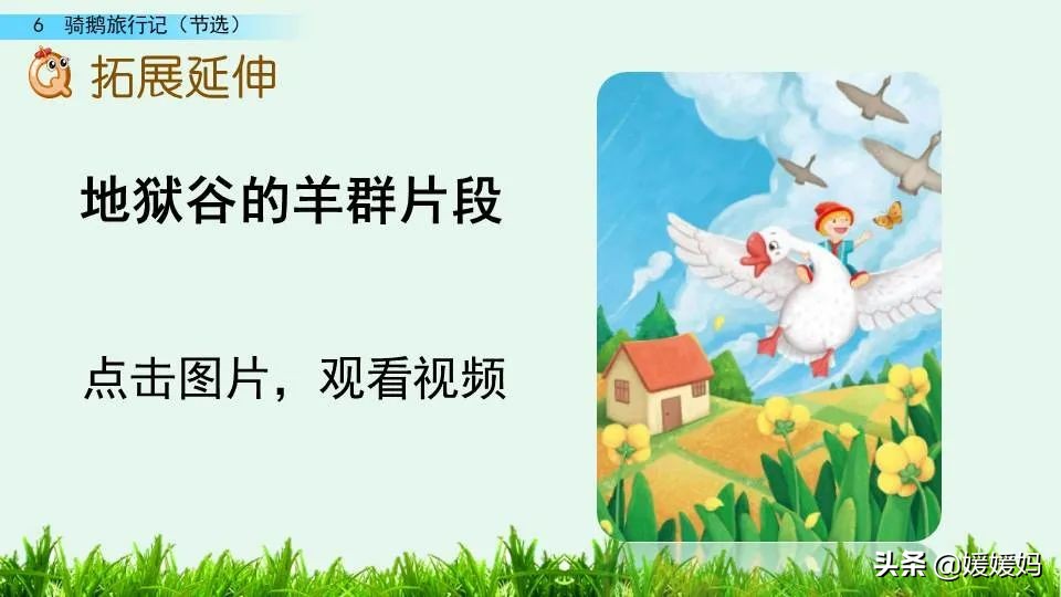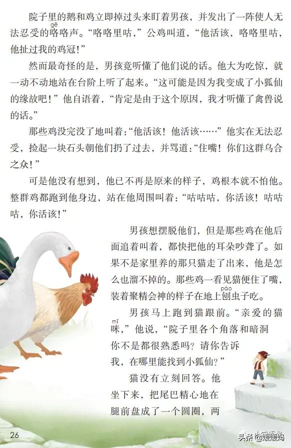3.院子里的鹅和鸡立即掉过头来盯着男孩,并发出了一阵使人无法忍受的咯咯声。公鸡叫道,“他活该,咯咯里咕,他扯过我的鸡冠!”立即”“盯着”写出了鸡和鹅听到尼尔斯名字时的强烈反应;从公鸡的话语中可看出尼尔斯以前是怎样淘气地捉弄他们,也表现出公鸡此时的幸灾乐祸。