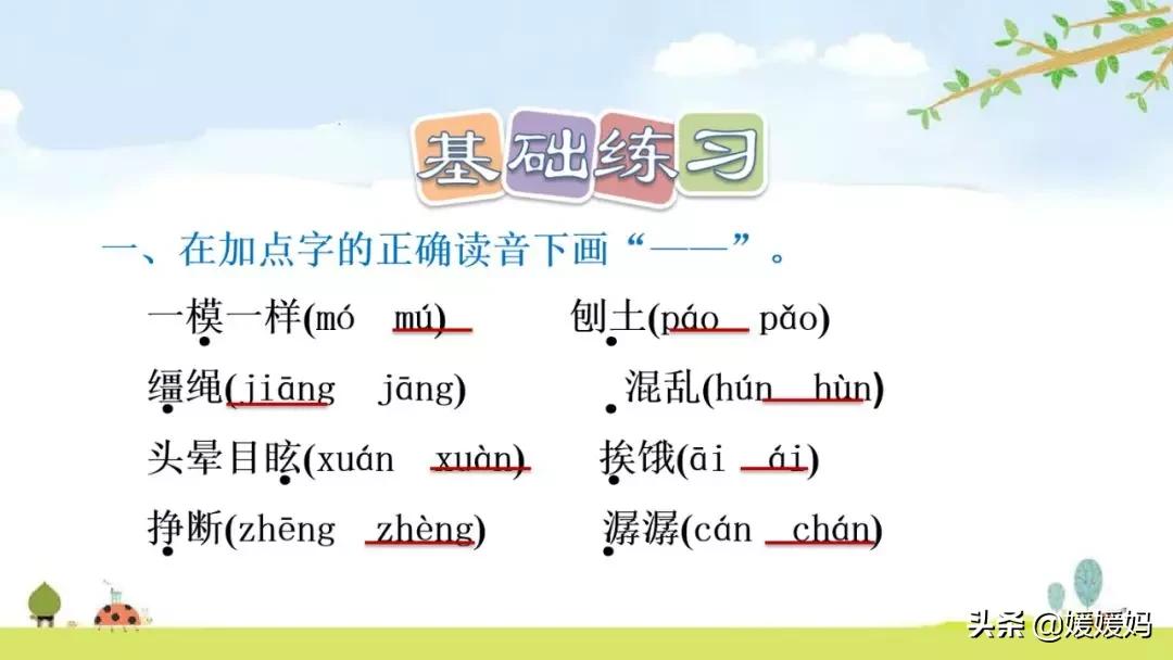 理解词语:头晕目眩:头脑发昏,眼睛发花。形容被事情繁琐弄得不知所措。乌合之众:指无组织无纪律的一群人。乌合,像乌鸦那样聚集。得意扬扬:形容非常得意的样子。恼怒:生气,发怒。示弱:表示比对方软弱,不敢较量(多用于否定式)。径直:表示直接进行某件事,不在事前费周折。混乱:没条理,没秩序。报应:佛教用语,原指种善因得善果、种恶因得恶果,后来多指种恶因得恶果。垂头丧气:形容情绪低落、失望懊丧的神情。漫游:随意游览。跃跃欲试:形容心里急切地想试试。无济于事:对于事情没有什么帮助;对于解决问题没有什么帮助。比喻不能解决问题。九牛二虎之力:形容很大的力量。