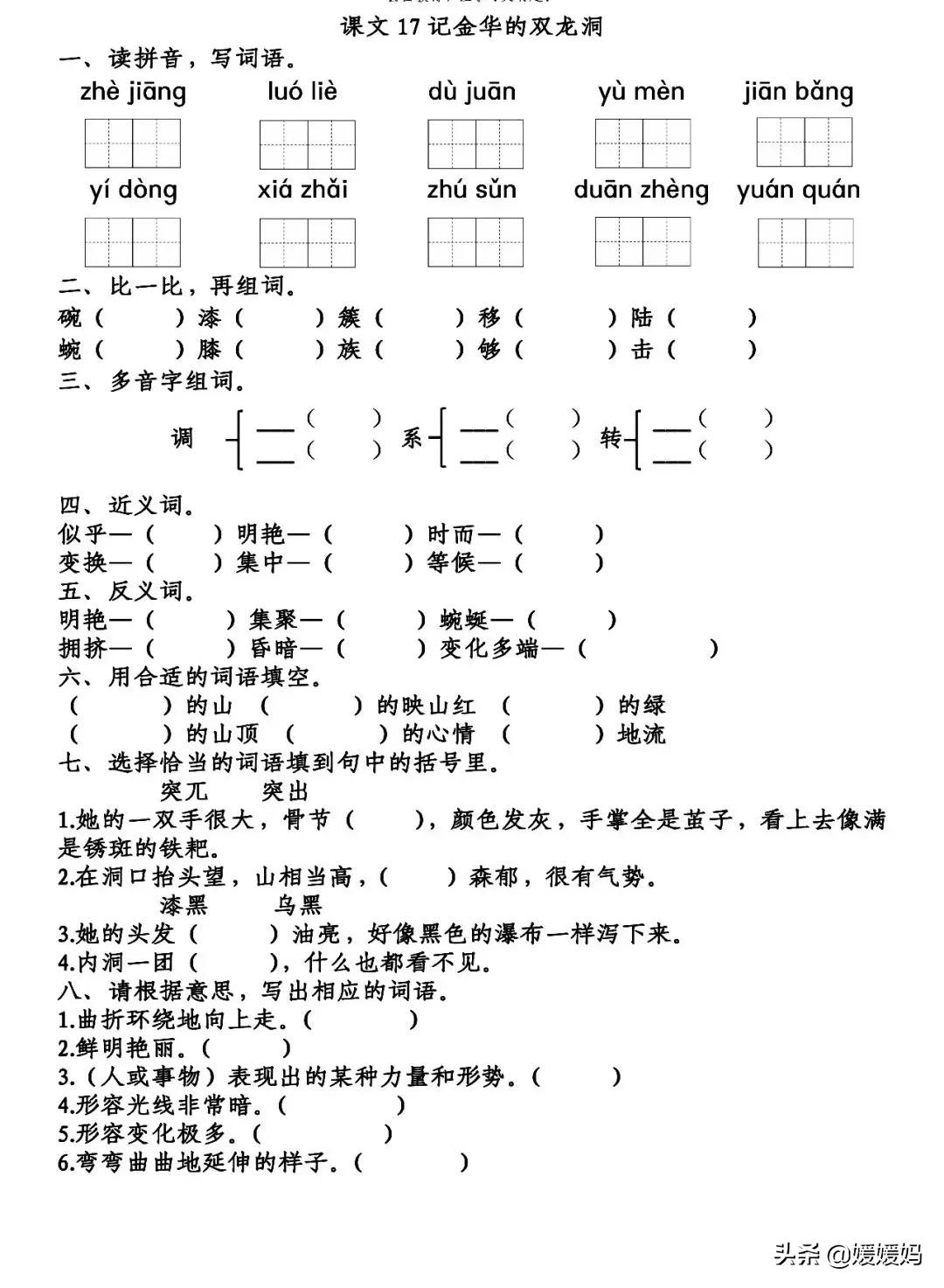 一、朗读课文。理清作者游双龙洞的顺序,再把下面的路线图补充完整。