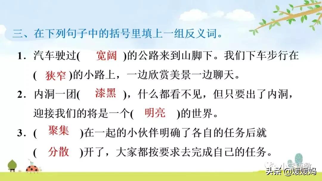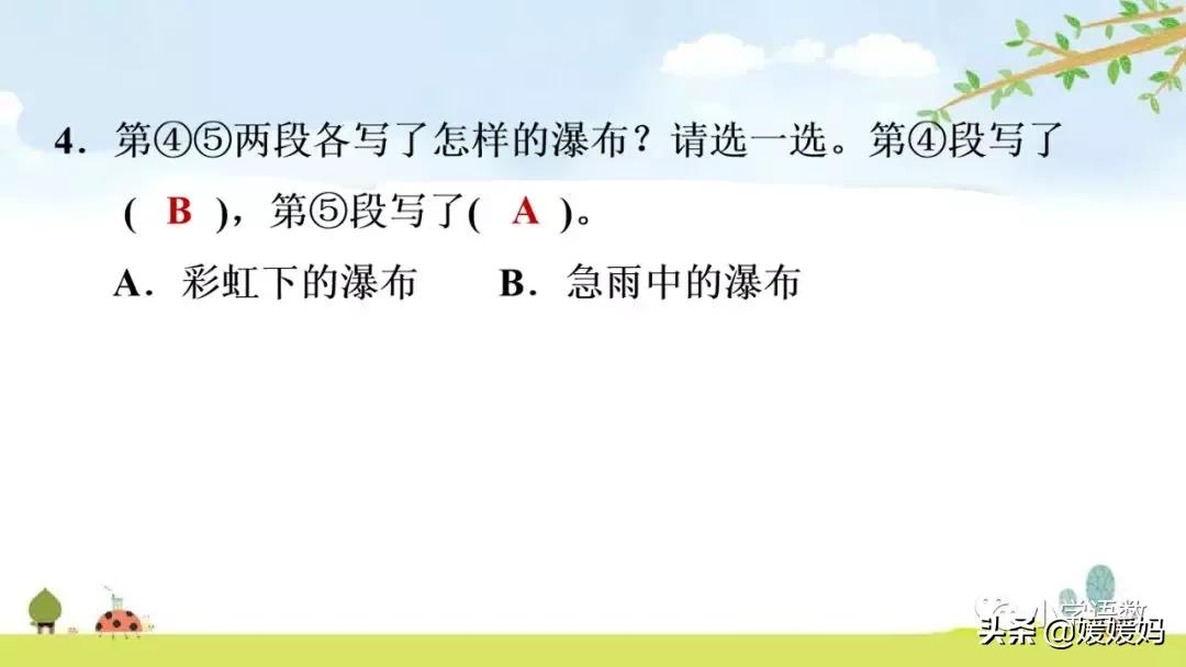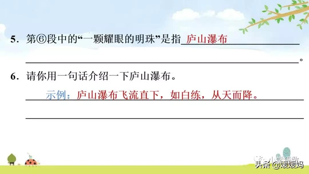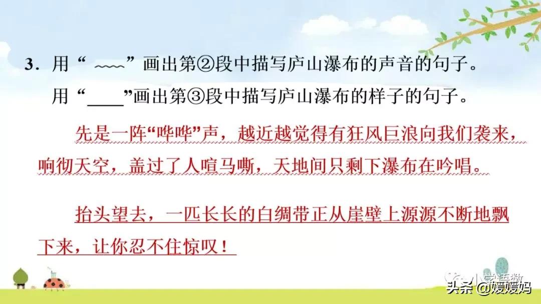 3.她的头发(乌黑)油亮,好像黑色的瀑布一样泻下来。